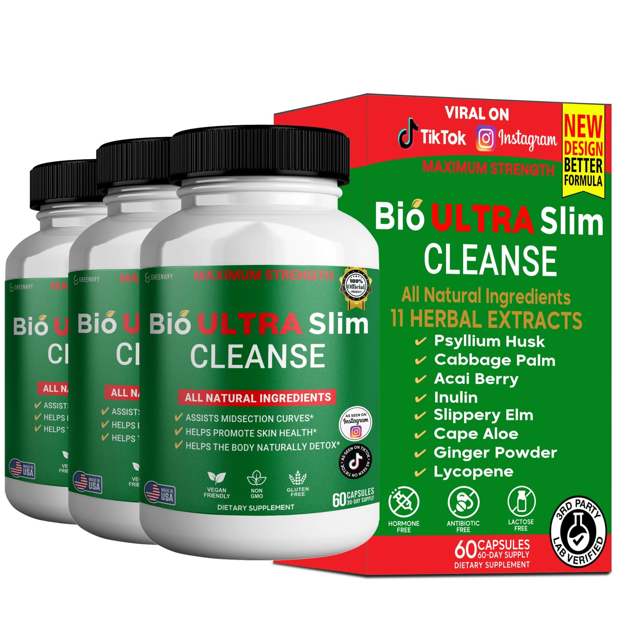 GREENVIFY Bio Ultra Slim Cleanse Maximum Strength Dietary Supplement 60 Capsules All Natural Ingredients Vegan Non-GMO Gluten Free 30-Day Supply (3)