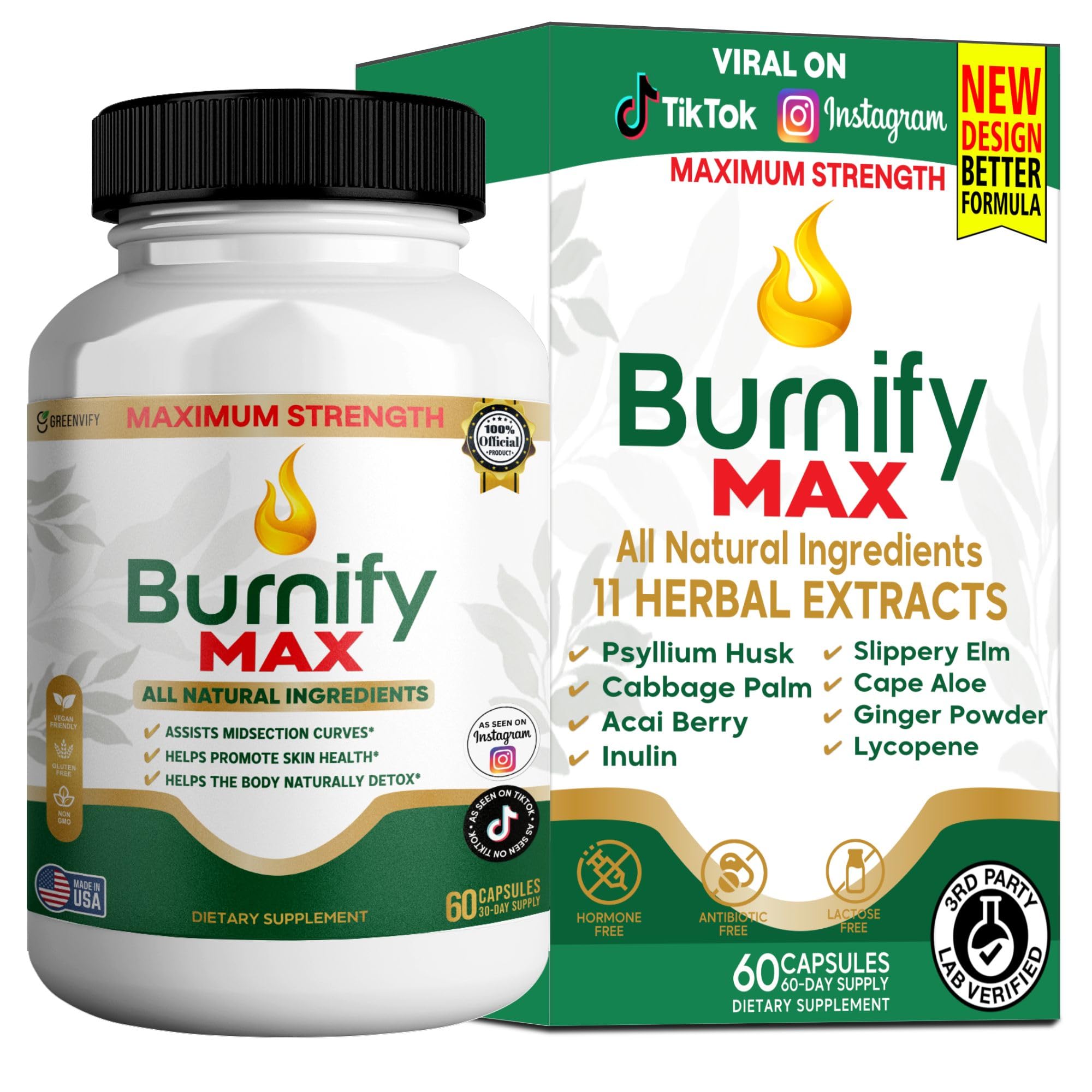 GREENVIFY Burnify Max Dietary Supplement Maximum Strength All Natural Ingredients 60 Capsules 30-Day Supply (1)