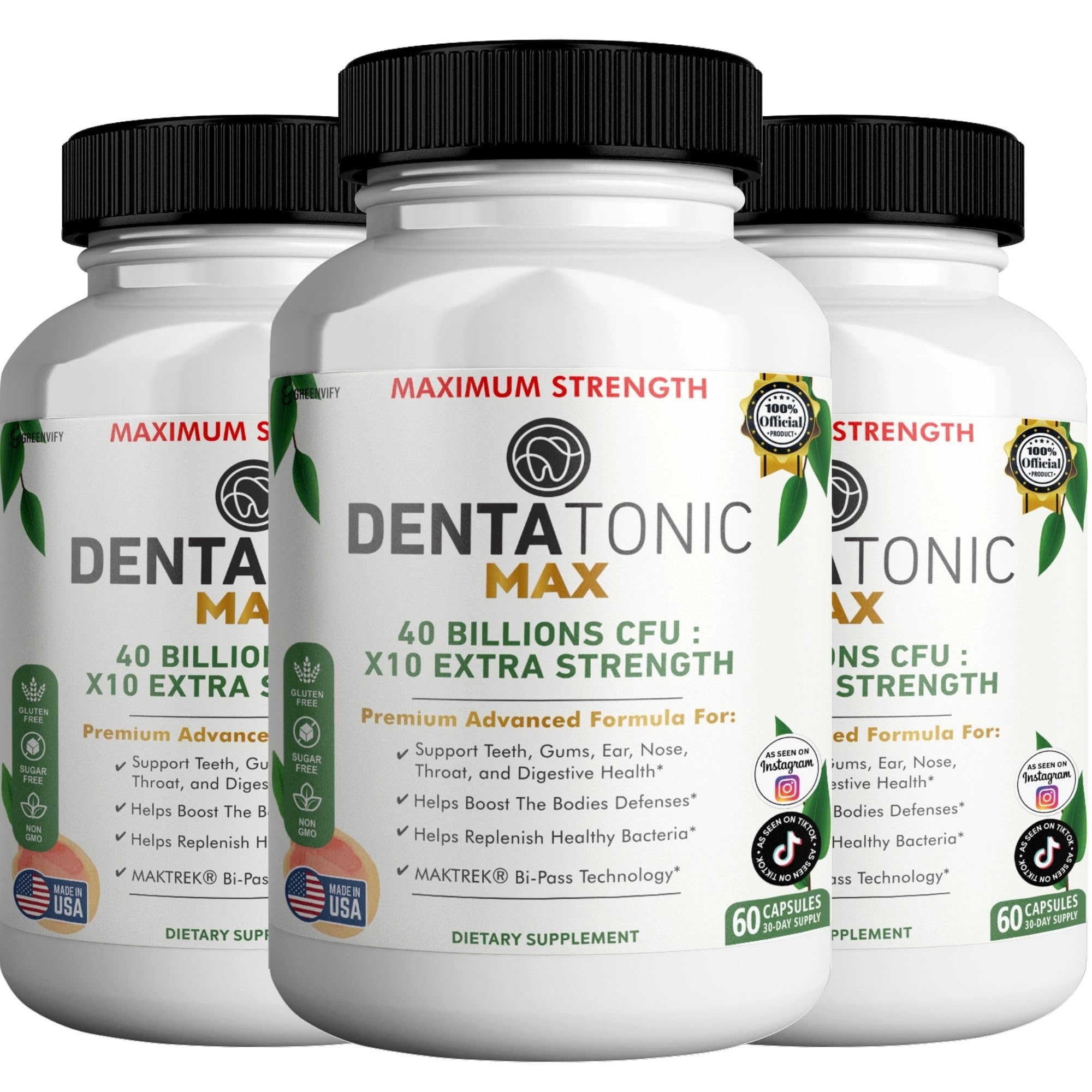GREENVIFY Denta Tonic Max Probiotic Supplement 40 Billion CFU 60 Capsules Supports Oral & Digestive Health (3)