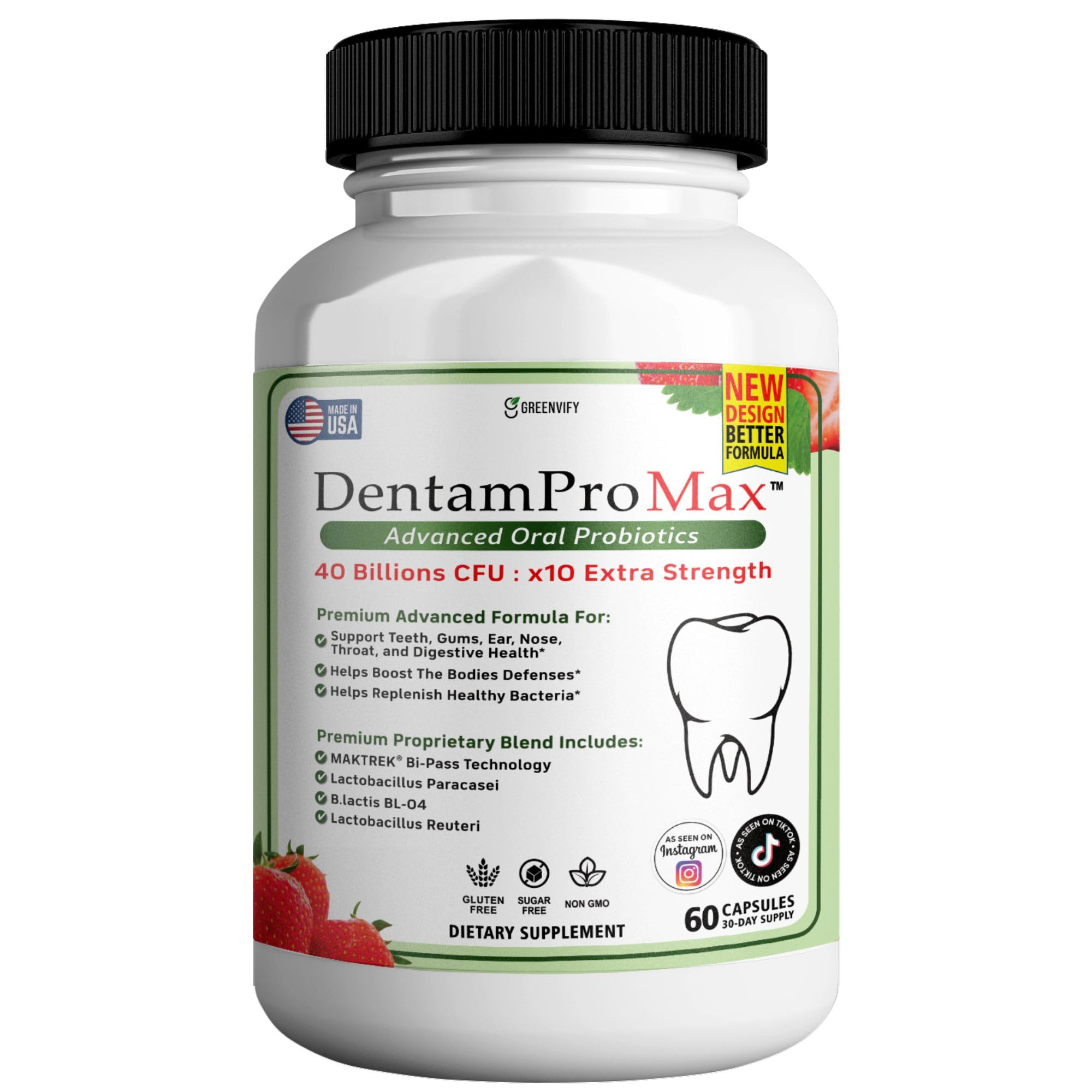 Experience the power of advanced oral probiotics with GREENVIFY DentamPro Max. This innovative supplement delivers 40 billion CFU of beneficial bacteria to support optimal gum and teeth health, neutralize bad breath, and promote a balanced oral microbiome for long-lasting freshness.