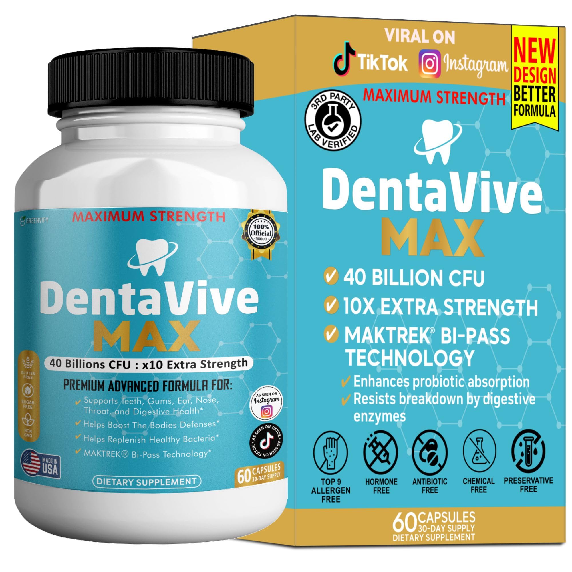 DentaVive Max Probiotic Supplement, 40 Billion CFU, 60 Capsules, Premium Oral Health Support for Teeth, Gums, Digestive Health