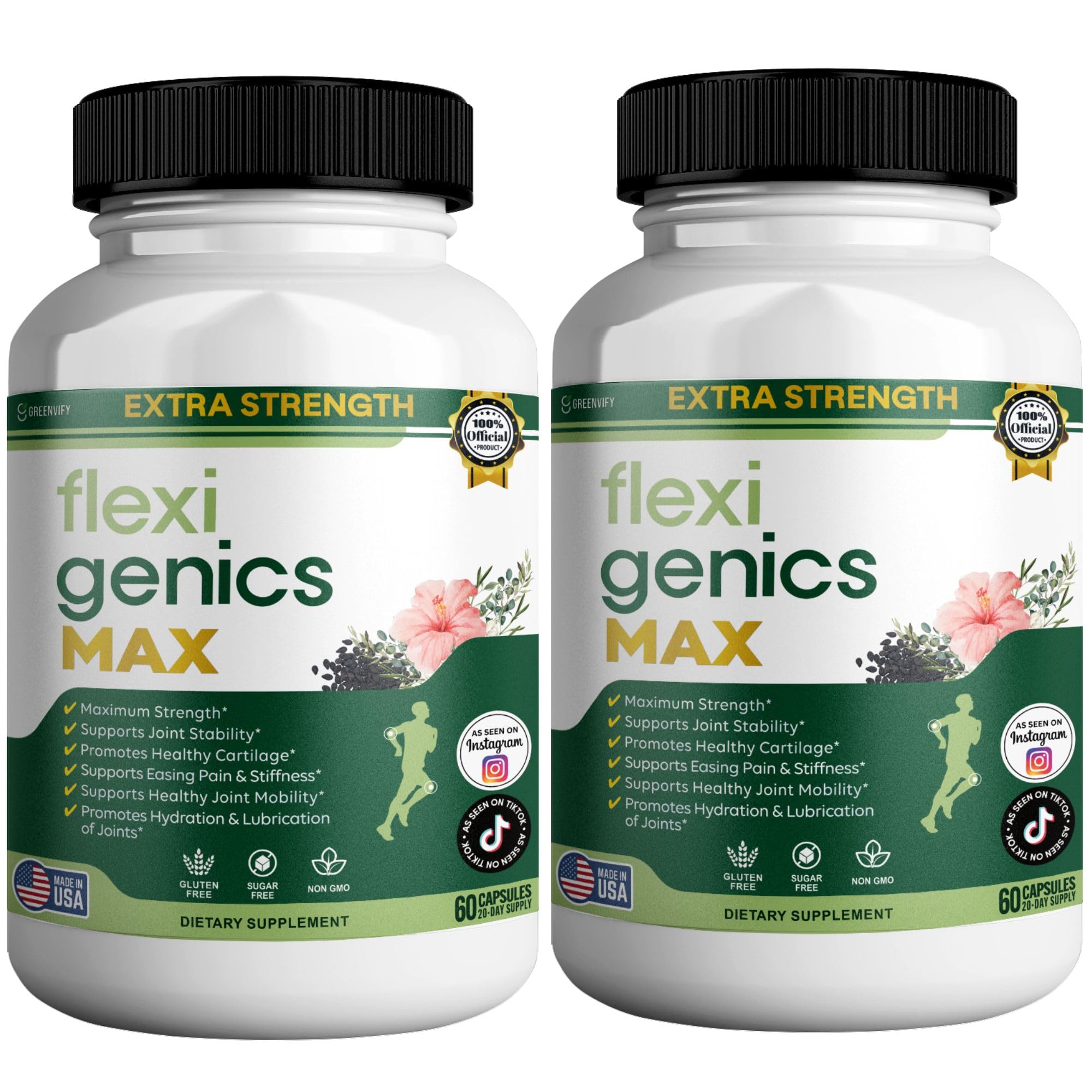 GREENVIFY Flexigenics Max Extra Strength Joint Support Supplement 1500mg Glucosamine 60 Capsules 20 Day Supply (2)