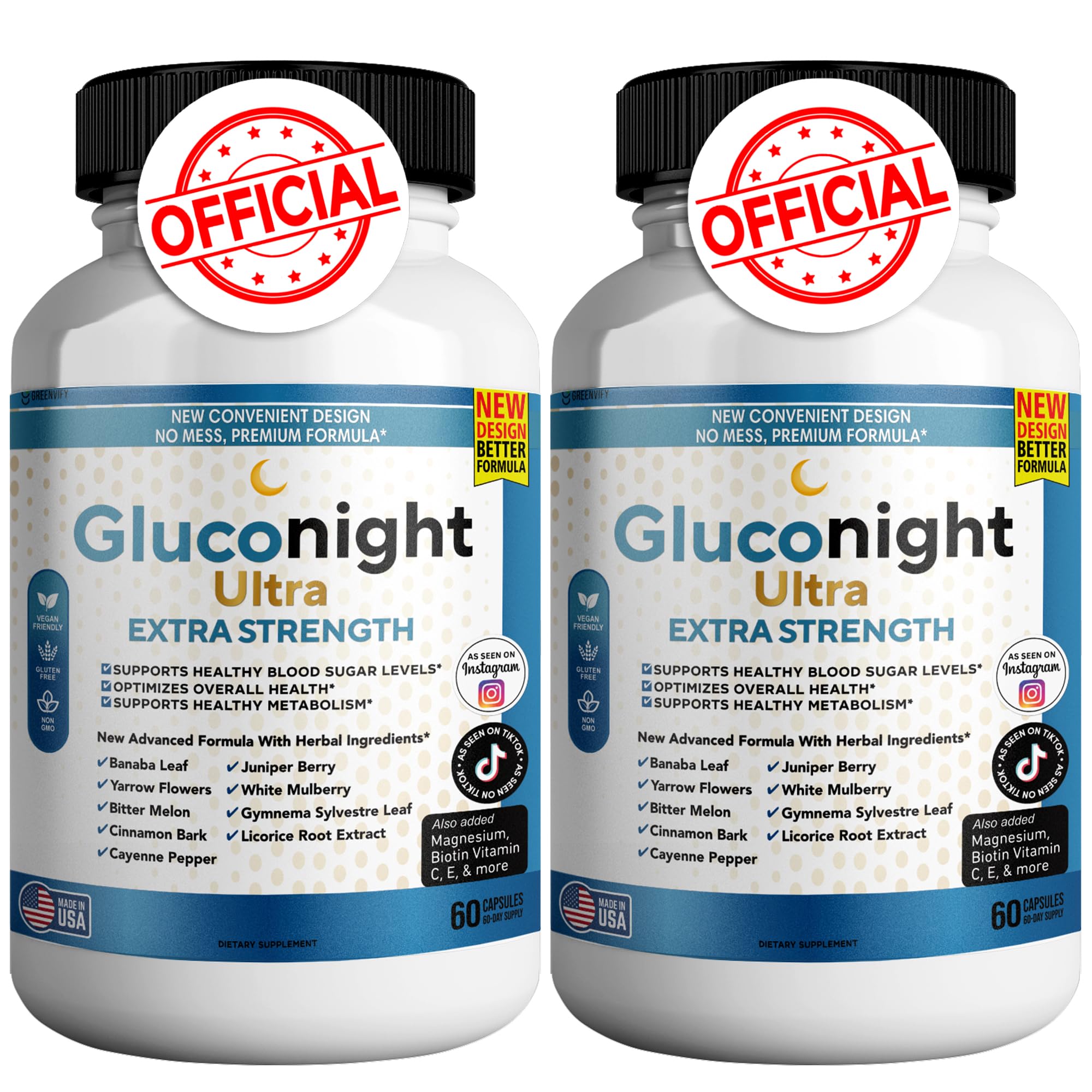 Discover the power of Gluconight Ultra Extra Strength, a premium herbal supplement designed to support healthy blood sugar levels and optimize overall health. This advanced formula features a potent blend of natural ingredients like Banaba Leaf, Bitter Melon, Cinnamon Bark, and Juniper Berry, known for their metabolic benefits. Crafted with care, this supplement helps promote glucose metabolism, balance blood sugar levels, and support a healthy metabolism. It's enriched with additional nutrients like magnesium, biotin, and alpha-lipoic acid to boost your wellness journey. Whether you're looking to enhance energy, focus, or overall vitality, Gluconight Ultra is your trusted partner. Made with vegan-friendly, gluten-free, and non-GMO ingredients, Gluconight Ultra is manufactured in the USA in a GMP-certified facility to ensure quality and safety. Each bottle contains 60 capsules, providing a convenient and easy-to-use 30-day supply. Take control of your health naturally with Gluconight Ultra Extra Strength.