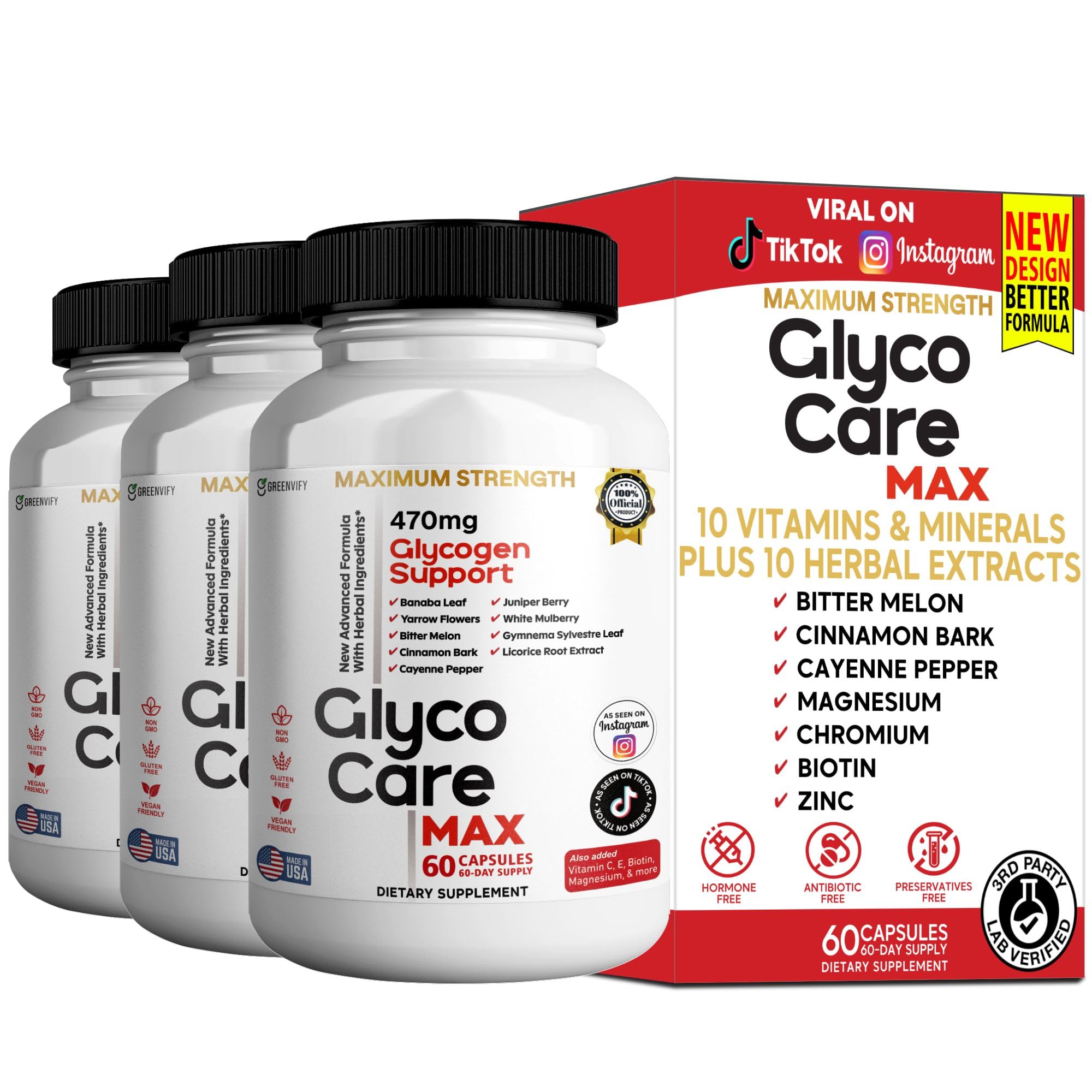 GREENVIFY GlycoCare MAX Glycogen Support Supplement 60 Capsules with Banaba Leaf Juniper Berry Vitamins & Minerals (3)