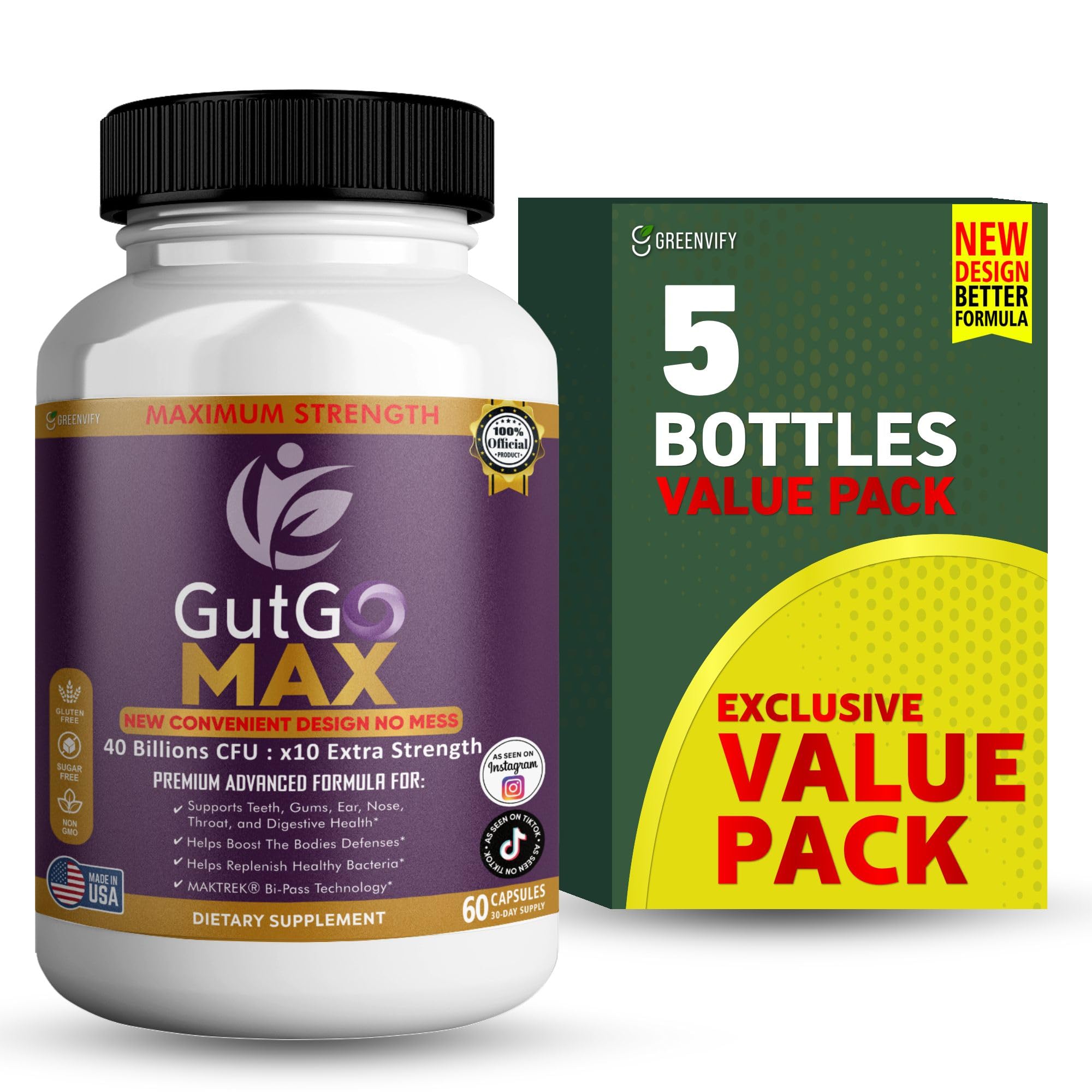 GREENVIFY GutGo Max Probiotic Supplement 40 Billion CFU 60 Capsules Maximum Strength Gluten Free Sugar Free (5)