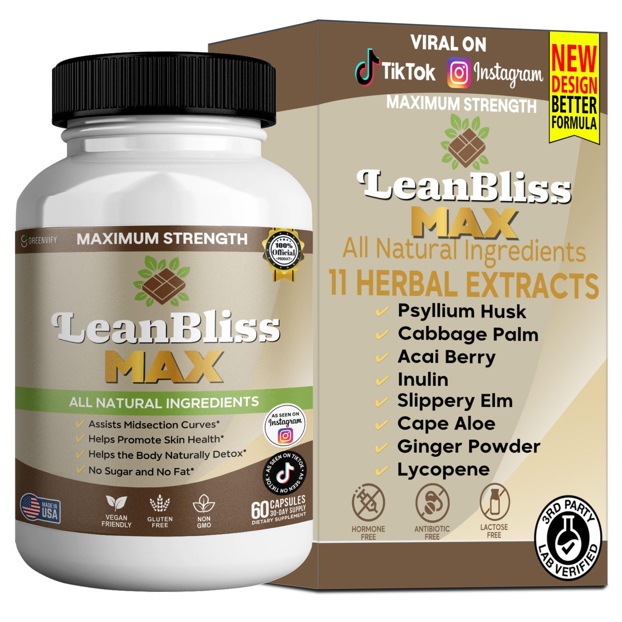 GREENVIFY LeafBliss Maximum Strength Natural Dietary Supplement 60 Capsules All Natural Ingredients Vegan Friendly Gluten Free Non-GMO 30-Day Supply (1)