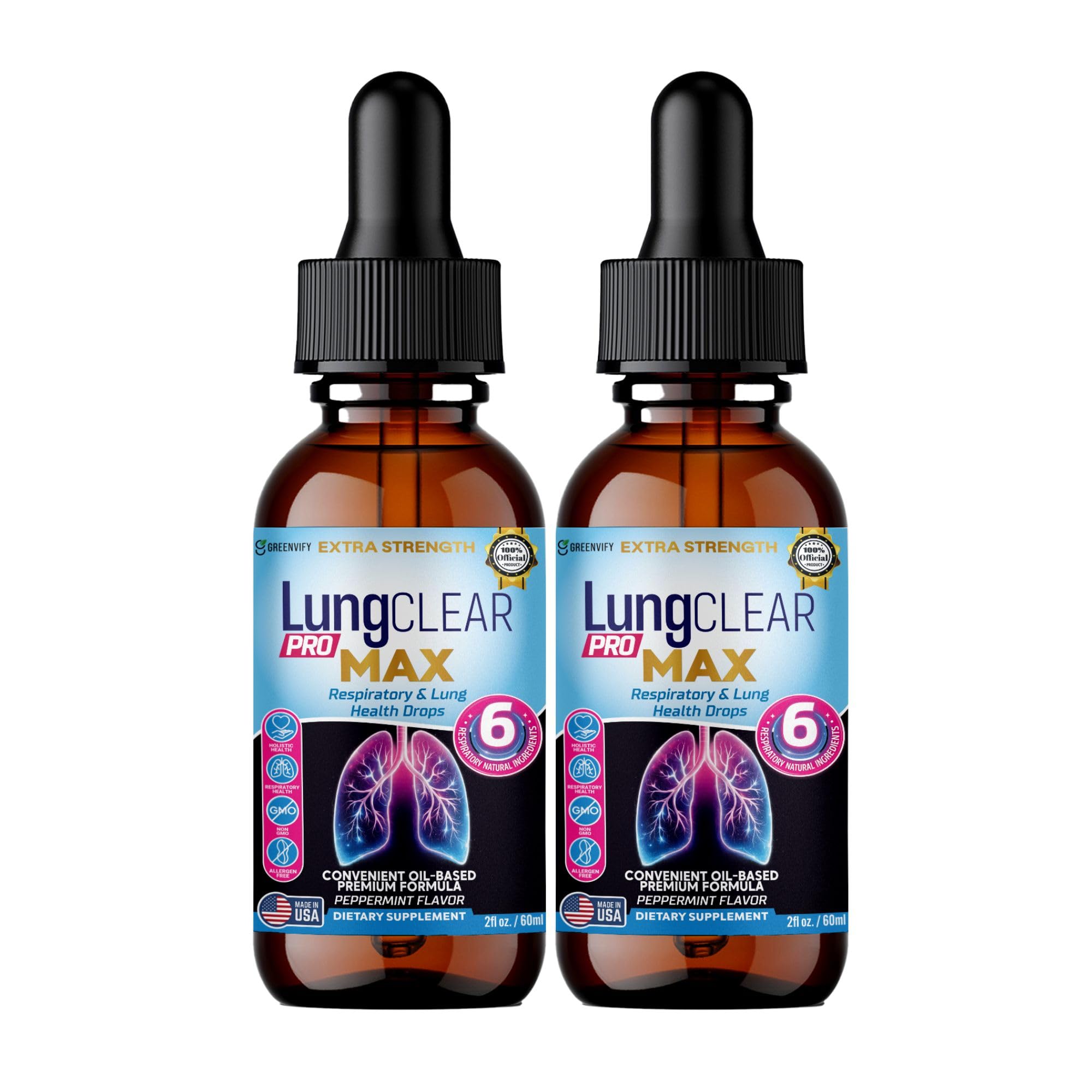 GREENVIFY LungCLEAR PRO MAX Extra Strength Respiratory & Lung Health Drops Peppermint Flavor 2 fl oz 30 Servings (2)