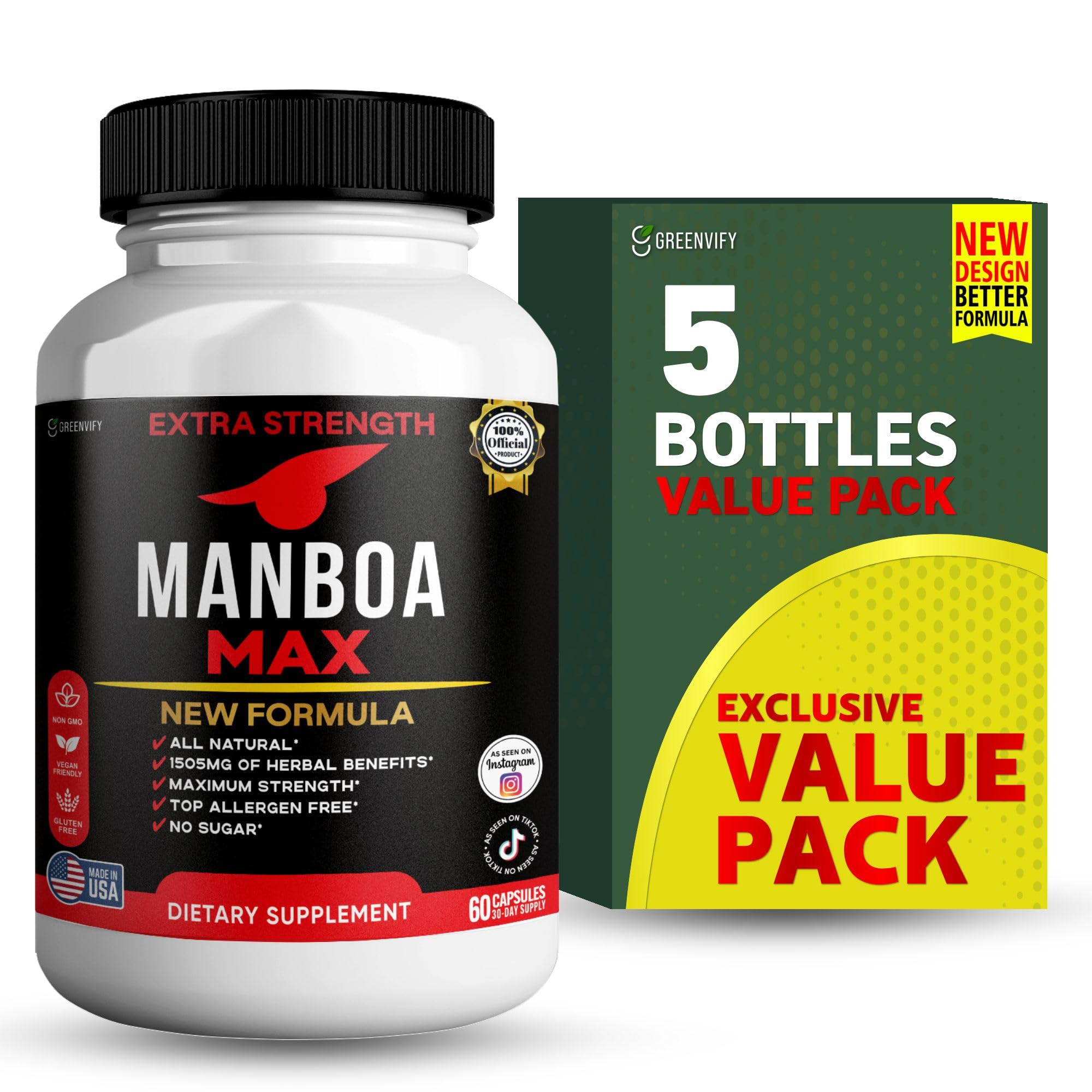GREENVIFY MANBOA MAX Extra Strength Organic Maca Root Complex Blend with Black Red Yellow Maca 60 Vegan Capsules Non-GMO Sugar-Free (5)