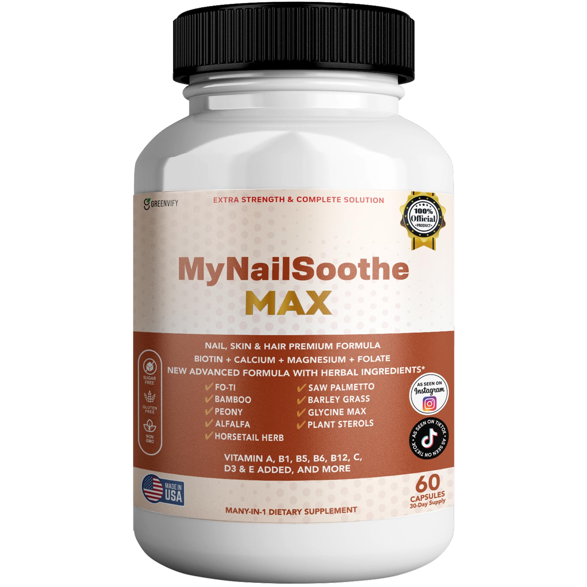 GREENVIFY MyNailSoothe MAX Hair Skin & Nail Supplement 60 Capsules with Biotin 5000mcg Vitamins Minerals & Herbal Blend (1)