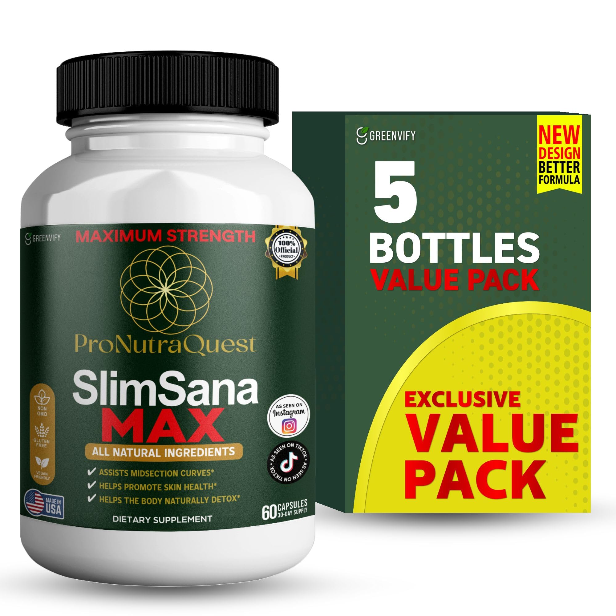 GREENVIFY ProNutraQuest SlimSana MAX Dietary Supplement Maximum Strength All Natural Ingredients 60 Capsules 30-Day Supply (5)