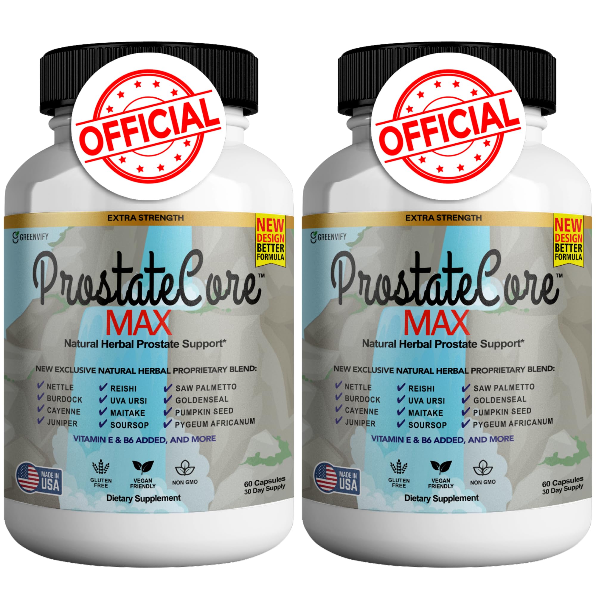 Unlock your full potential with GREENVIFY ProstateCore Max, a premium dietary supplement crafted to support vitality, prostate health, and immune defense. This advanced formula features a unique blend of vitamins, minerals, and natural herbal extracts like Saw Palmetto, Reishi, Zinc, and Pygeum Bark. Perfect for those seeking a boost in energy, stamina, and overall health, the addition of ingredients like Ashwagandha and Maitake Mushroom ensures enhanced recovery and performance. Proudly made in a GMP-certified facility, GREENVIFY ProstateCore Max is gluten-free, vegan-friendly, and non-GMO, offering a safe and high-quality solution for men and women. With easy-to-use capsules, this supplement is the ultimate choice for enhancing daily wellness. Feel energized, stay healthy, and live your best life with GREENVIFY ProstateCore Max.Easy-to-Use Capsules: Convenient daily capsules for men and women, designed to seamlessly integrate into your health routine. High-Quality Ingredients: Gluten-free, vegan-friendly, and made with non-GMO ingredients in a GMP-certified facility for a product you can trust. Energy Recovery: Enhance stamina and strength while aiding recovery with nutrients like Copper, Ashwagandha, and Maitake Mushroom. Prostate Immune Health: Designed to promote prostate function and strengthen the immune system with a powerful herbal formula including Pygeum Bark, Nettle, and Broccoli extracts. Comprehensive Health Support: Packed with a blend of natural herbs, vitamins, and minerals, including Saw Palmetto, Reishi, Zinc, and Vitamin E, to support vitality and overall well-being.