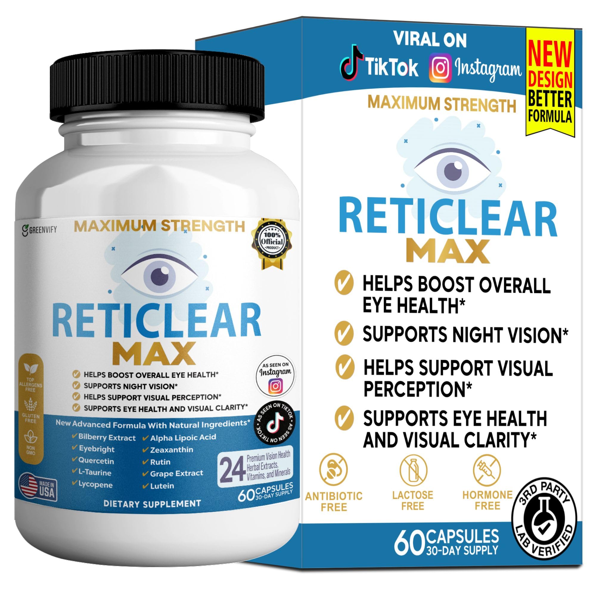 GREENVIFY Reticlear Max Eye Health Supplement 60 Capsules Vision Support with 24 Natural Ingredients 30 Day Supply (1)