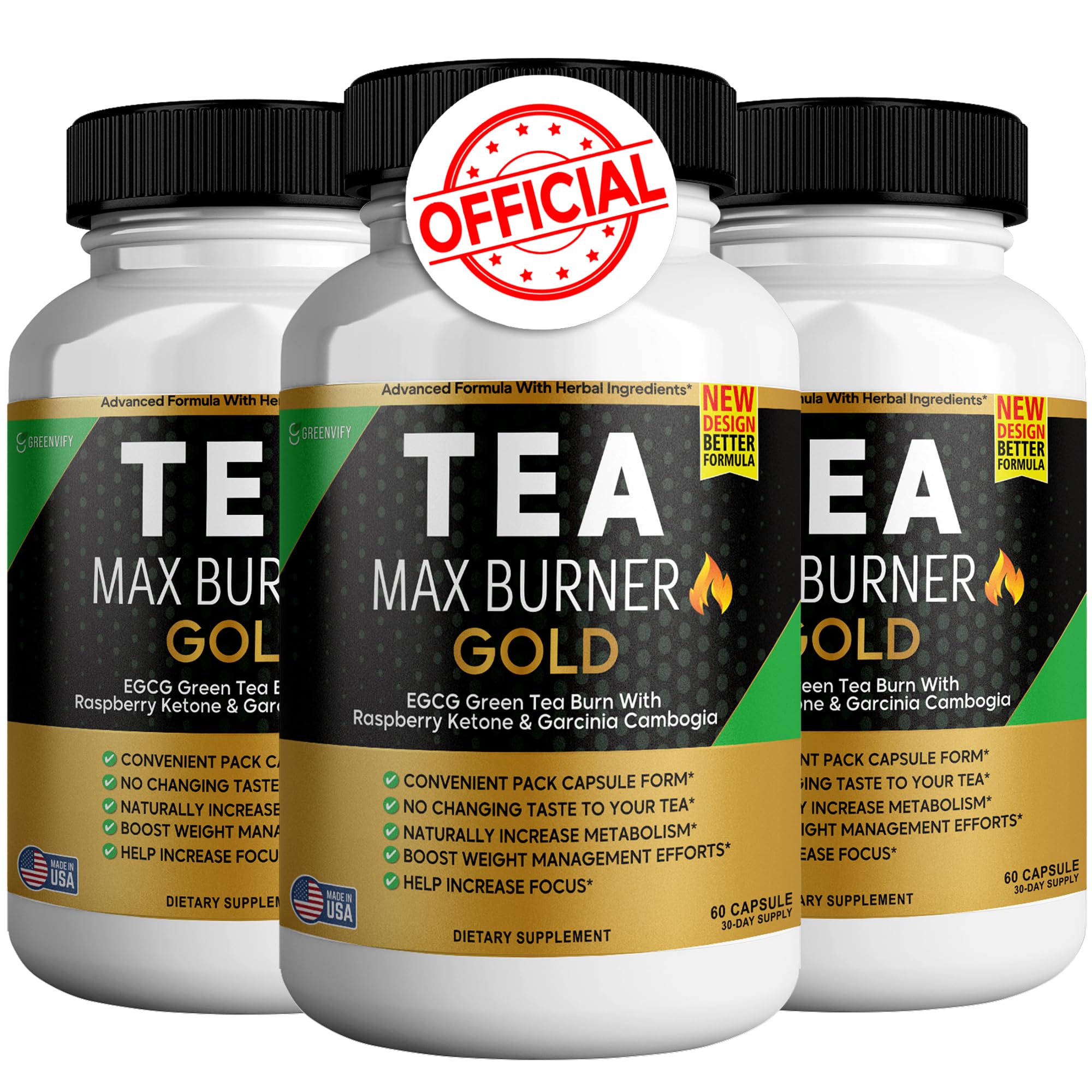 GREENVIFY Tea Max Burn Burner Gold Green Tea Extract & Green Coffee Bean for Metabolism Support Natural Energy Boost Antioxidant-Rich Supplement 180 Capsules (3 Pack)