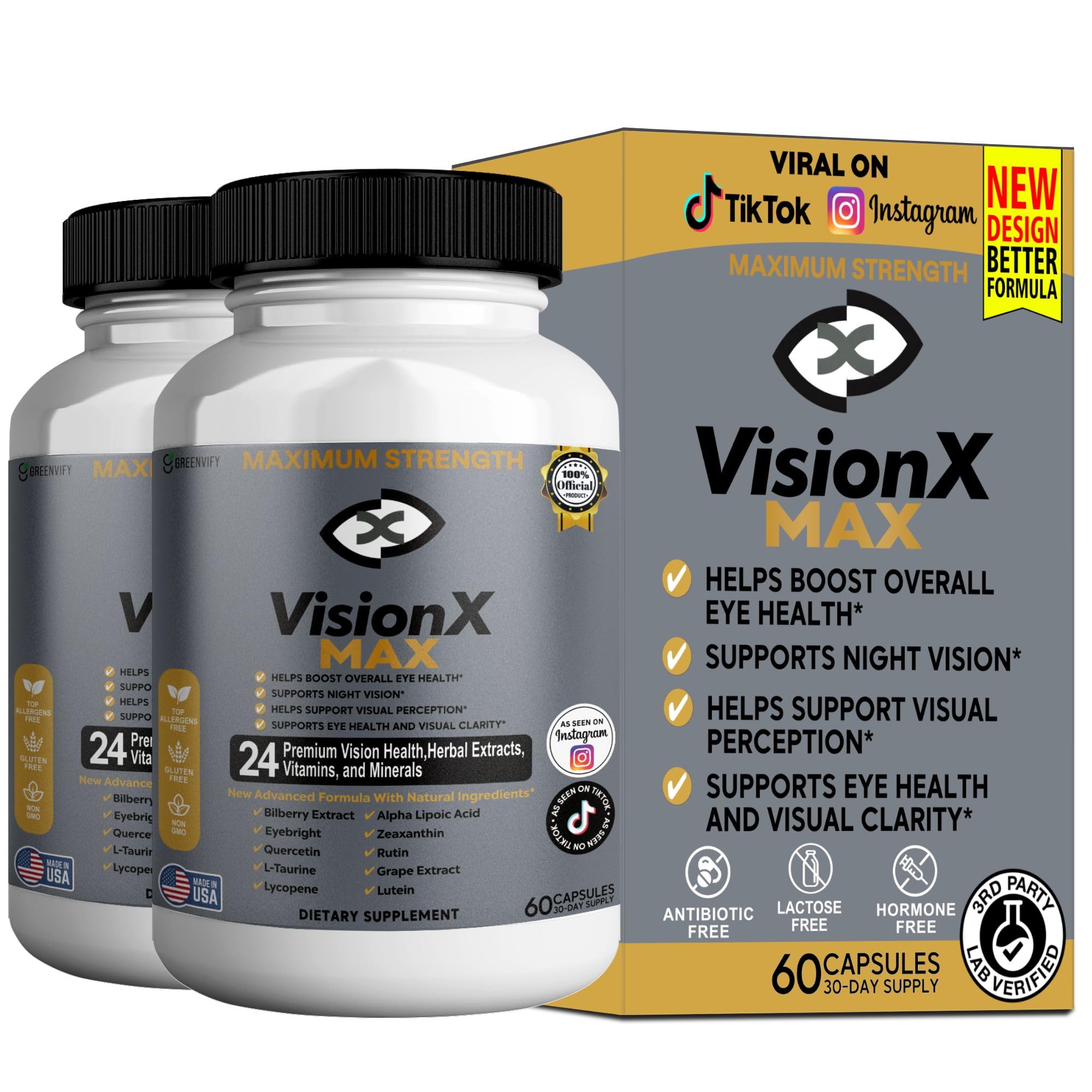 GREENVIFY VisionX Maximum Strength Eye Health Supplement 24 Premium Vision Herbal Extracts Vitamins Minerals 60 Capsules 30-Day Supply (2)