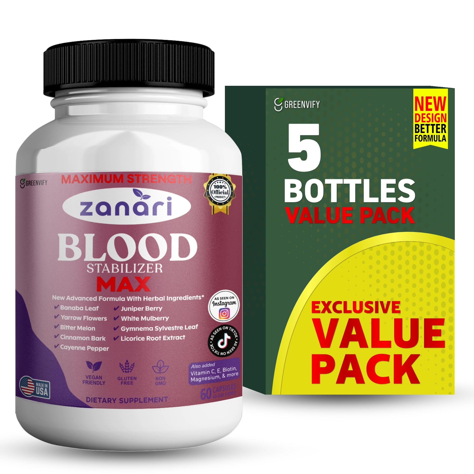 GREENVIFY Zanafi Blood Stabilizer Max 60 Veggie Capsules Maximum Strength Herbal Supplement with Banaba Leaf Juniper Berry White Mulberry Vegan Friendly Gluten Free (5)