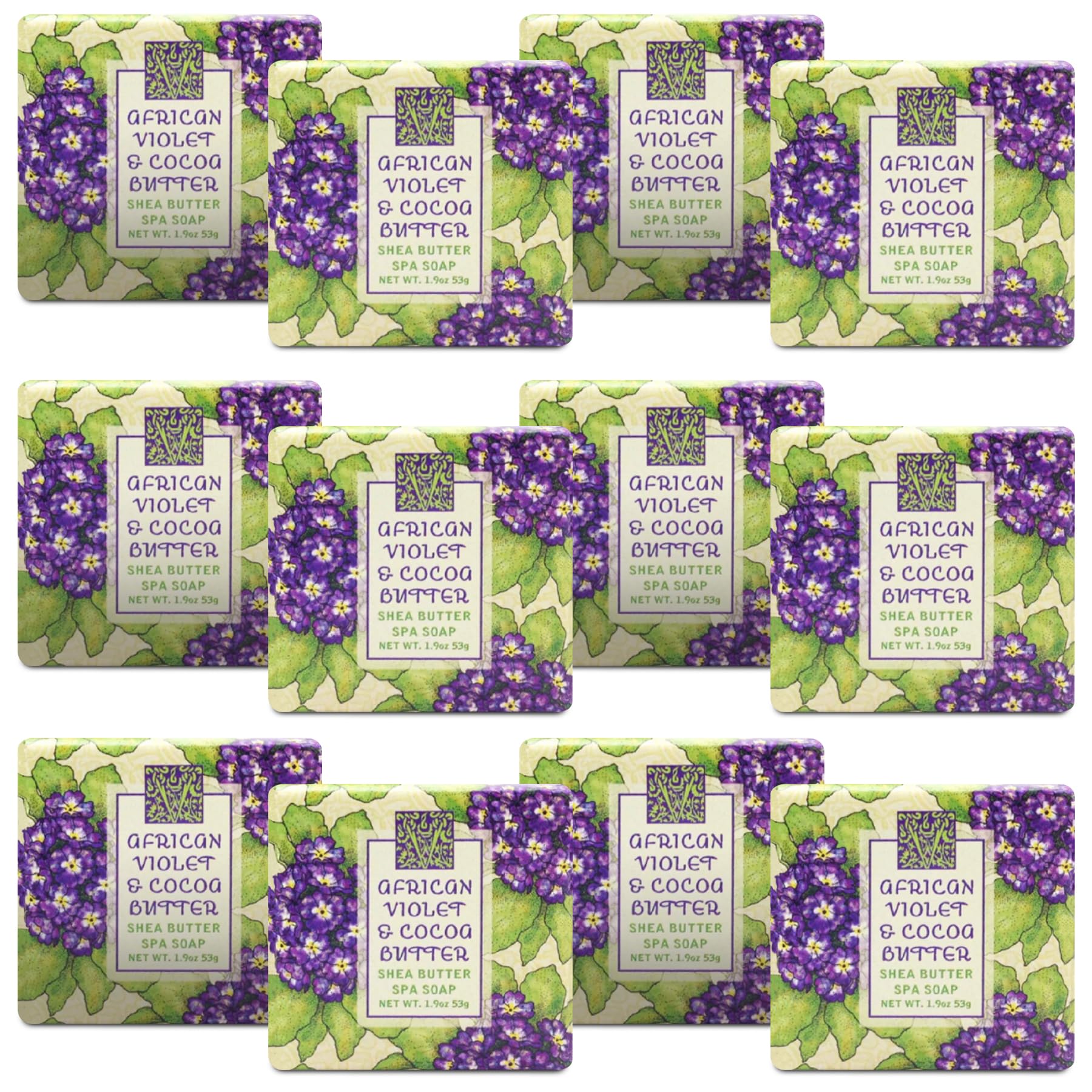 Greenwich Bay Mini Botanical Soap Bars 12 Pack 1.9 oz Each Individually Wrapped Guest Soaps for Airbnb Spa Travel Bath Travel Size Bar Soap Set African Violet