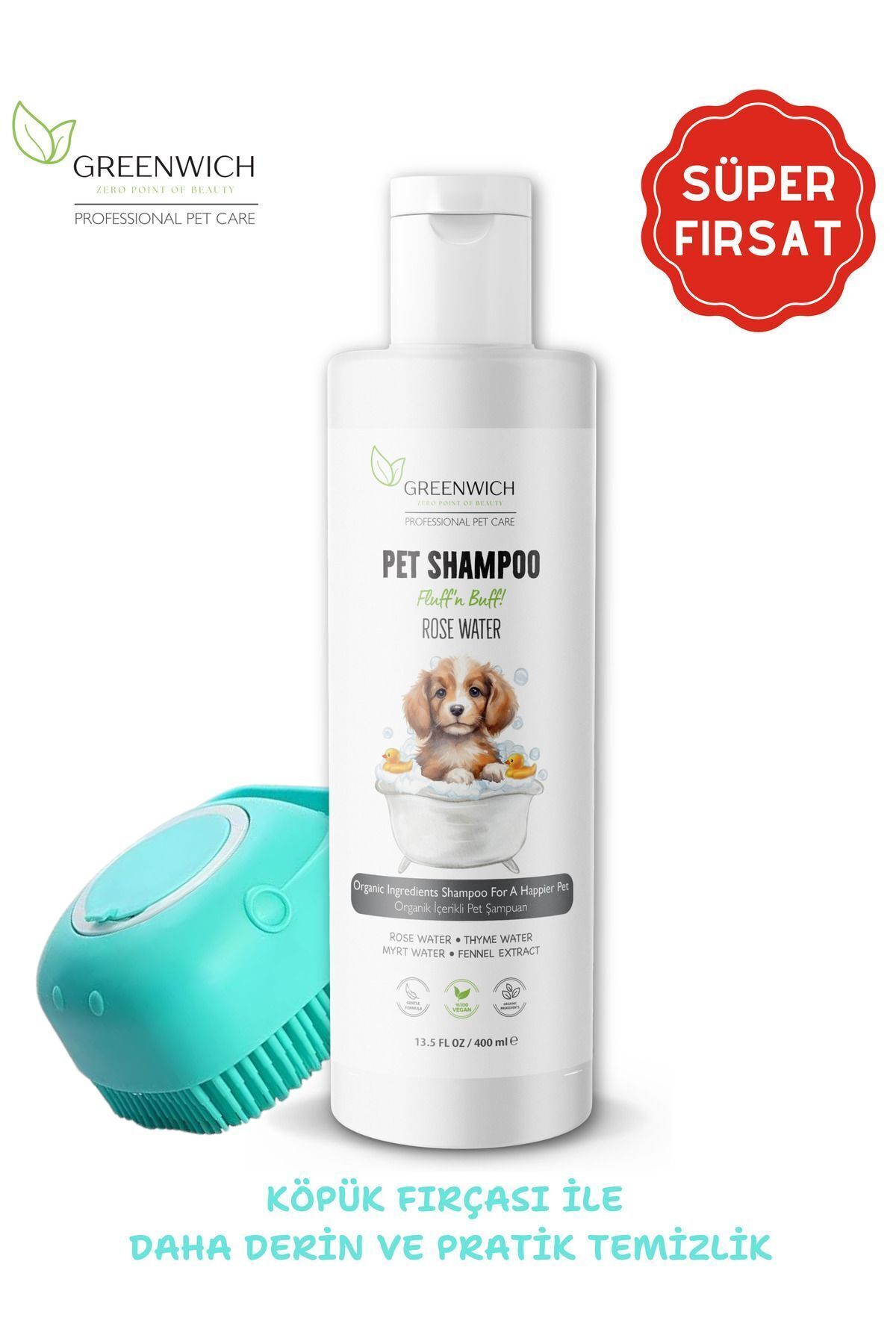 Greenwich organic vegan dog shampoo gently cleans your pet's fur while offering the refreshing power of nature. With its organic and vegan ingredients, it is ideal for all skin types. Product Features: Organic and vegan: Made with natural and plant-based ingredients. Suitable for sensitive skin: Free of irritating substances such as paraben, silicone, and SLES. Gentle cleaning: Gently cleans and softens your dog's fur. Pleasant scent: It has a natural and refreshing scent. With Greenwich Organic Vegan Dog Shampoo: You can make your dog's fur look shinier and healthier. Enjoy a refreshing bath. Instructions for use: Wet your dog with warm water. Lather some shampoo in your palm. Massage into your dog's fur. Rinse with plenty of water. Repeat if necessary. Let your dog's fur meet the healing power of nature with Greenwich Organic Vegan Dog Shampoo!