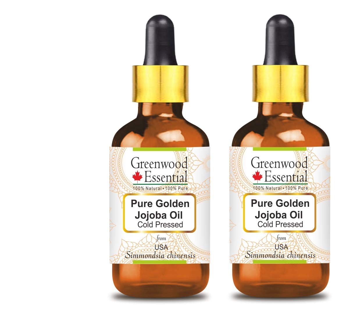 Greenwood essential pure golden jojoba oil (Simmondsia chinensis) natural therapeutic quality cold pressed.About Greenwood Essential: We are the largest brand for essential and carrier oils in India with satisfied customers in over 100 countries.We specialize in obtaining finest natural oils from perfect sources around the world.No manufacturer or country can produce all oils of good quality at a location country.There are specialized manufacturers who produce specific oils with natural ingredients that are specific for this region or this country, for example the best oregano oil in Moldova, the best lavender oil in Spain, the best rosehip kernel oil comes from the Andes in South America.Our oils are certified naturally and purely with traceable origin and of the highest quality that you can buy for money.We have highly developed test devices.All of our programs have a certificate of origin and are only accepted after a strict purity test.We are also class leading manufacturers of one of the best selection of natural personal care products in India.We strive to satisfy each of our customers Ingredients ingredients Golden Jojoba oil Instructions Cold -pressed or carrier oils can be applied directly to the skin.It is obtained from plant sources.Use it alone or with other oils to maintain your skin.It can also be used to dilute essential oils to transport them into the skin.Attention: This product has no childproofing.Keep away from children. Moreapplication: cold -pressed or carrier oils can be applied directly to the skin.It is obtained from plant sources.Use it alone or with other oils to maintain your skin.It can also be used to dilute essential oils to transport them into the skin.Attention: This product has no childproofing.Keep away from children.Aroma: carrier oils are not aromatic.Most natural carrier oils have a weak or no aroma.We do not add synthetic fragrances so that our oils smell well.Pure golden jojoba oil is used for therapeutic purposes and has a very weak or no aroma.Use it to experience therapeutic advantages.Quantity - 100ml x 2 (6.76 OZ) container type - high -quality brown las bottle with two glass dripper.Method of extraction: cold pressed botanical name - Simmondsia chinensis pure, natural, undiluted carrier oil in therapeutic quality, non -alcoholic, solvent -free, vegan, animal test -free.100 risk-free purchase: We have been offering a ""money back guarantee without questions"" for 10 years.We believe that our oils will bring you permanent therapeutic advantages.Greenwood Essential Reines Golden Jojoba Öl (Simmondsia chinensis) Natürliche Therapeutische Qualität kaltgepresst. Über Greenwood Essential: Wir sind die größte Marke für ätherische und Trägeröle in Indien mit zufriedenen Kunden in über 100 Ländern. Wir sind darauf spezialisiert, feinste natürliche Öle aus einwandfreien Quellen auf der ganzen Welt zu beziehen. Kein Hersteller oder Land kann alle Öle von guter Qualität an einem Standort Land produzieren. Es gibt spezialisierte Hersteller, die spezifische Öle mit Natürlichen Inhaltsstoffen herstellen, die für diese Region oder dieses Land spezifisch sind, zum Beispiel findet man das beste Oreganoöl in Moldawien, das beste Lavendelöl in Spanien, das beste Hagebuttenkernöl stammt aus den Anden in Südamerika. Unsere Öle sind zertifiziert natürlich und rein mit rückverfolgbarer Herkunft und von höchster Qualität, die man für Geld kaufen kann. Wir verfügen über hochentwickelte Prüfgeräte. Alle unsere Sendungen haben ein Ursprungszeugnis und werden nur nach strenger Reinheitsprüfung akzeptiert. Wir sind auch klassenführende Hersteller einer der besten Auswahl an Natürlichen Körperpflegeprodukten in Indien. Wir bemühen uns, jeden unserer Kunden zufrieden zu stellen INHALTSSTOFFE ZUTATEN Golden Jojoba Öl GEBRAUCHSANWEISUNG Kaltgepresste oder Trägeröle können direkt auf die Haut aufgetragen werden. Es wird aus pflanzlichen Quellen gewonnen. Verwenden Sie es allein oder mit anderen Ölen, um Ihre Haut zu pflegen. Es kann auch verwendet werden, um ätherische Öle zu verdünnen, um sie in die Haut zu transportieren. ACHTUNG: Dieses Produkt hat keine Kindersicherung. Von Kindern fernhalten. MehrANWENDUNG: Kaltgepresste oder Trägeröle können direkt auf die Haut aufgetragen werden. Es wird aus pflanzlichen Quellen gewonnen. Verwenden Sie es allein oder mit anderen Ölen, um Ihre Haut zu pflegen. Es kann auch verwendet werden, um ätherische Öle zu verdünnen, um sie in die Haut zu transportieren. ACHTUNG: Dieses Produkt hat keine Kindersicherung. Von Kindern fernhalten. AROMA: Trägeröle sind NICHT aromatisch. Die meisten Natürlichen Trägeröle haben ein SCHWACHES ODER KEIN AROMA. Wir fügen Keine Synthetischen Duftstoffe Hinzu, Damit unsere Öle gut Riechen. Reines Golden Jojoba Öl Wird für Therapeutische Zwecke Verwendet und hat ein Sehr Schwaches oder Kein Aroma. Verwenden Sie es, um Therapeutische Vorteile zu Erfahren. Quantität – 100ml X 2 (6.76 oz) Behältertyp – Hochwertige Braunglasflasche mit Zwei Glas Tropfer. METHODE VON EXTRAKTION: Kalt gepresst Botanischer Name – Simmondsia chinensis Reines, Natürliches, Unverdünntes Trägeröl in Therapeutischer Qualität, alkoholfrei, lösungsmittelfrei, Vegan, Tierversuchsfrei. 100 RISIKOFREIER KAUF: Wir bieten seit 10 Jahren eine "Geld-zurück-Garantie ohne Fragen" an. Wir glauben, dass unsere Öle Ihnen dauerhafte therapeutische Vorteile bringen werden.Greenwood Essential Naturreine Golden Jojoba Öl (Simmondsia chinensis) mit Glas Tropfer Naturreine Therapeutische Qualität kaltgepresst (Pack of Two) 100ml X 2 (6.76 oz)