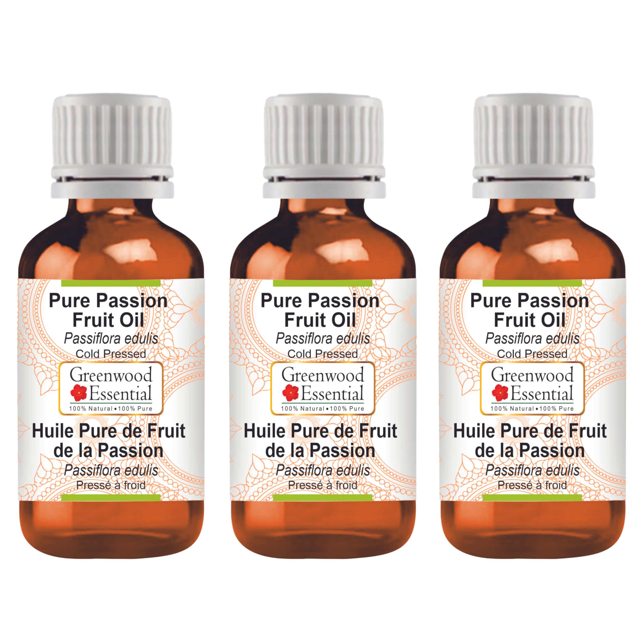 Greenwood essential pure passion fruit oil (Passiflora Edulis) natural therapeutic quality cold pressed.About Greenwood Essential: We are the largest brand for essential and carrier oils in India with satisfied customers in over 100 countries.We specialize in obtaining finest natural oils from perfect sources around the world.No manufacturer or country can produce all oils of good quality at a location/country.There are specialized manufacturers who produce specific oils with natural ingredients that are specific for this region or this country, for example the best oregano oil in Moldova, the best lavender oil in Spain, the best rosehip kernel oil comes from the Andes in South America.Our oils are certified naturally and purely with traceable origin and of the highest quality that you can buy for money.We have highly developed test devices.All of our programs have a certificate of origin and are only accepted after a strict purity test.We are also class leading manufacturers of one of the best selection of natural personal care products in India.We strive to satisfy each of our customers Ingredients / ingredients Passion fruit oil Instructions Cold -pressed or carrier oils can be applied directly to the skin.It is obtained from plant sources.Use it alone or with other oils to maintain your skin.It can also be used to dilute essential oils to transport them into the skin.Attention: This product has no childproofing.Keep away from children. LEGAL NOTICE The above statements were not evaluated by the Food and Drug Administration (FDA) and are not intended to diagnose, treat or prevent diseases or health states.Attention: This product has no childproofing.Keep out of reach of children.If you are pregnant, breastfeeding, take medication or suffer from an illness, consult a doctor before application. More application: cold -pressed or carrier oils can be applied directly to the skin.It is obtained from plant sources.Use it alone or with other oils to maintain your skin.It can also be used to dilute essential oils to transport them into the skin.Attention: This product has no childproofing.Keep away from children.Aroma: carrier oils are not aromatic.Most natural carrier oils have a weak or no aroma.We do not add synthetic fragrances so that our oils smell well.Pure passion fruit oil is used for therapeutic purposes and has a very weak or no aroma.Use it to experience therapeutic advantages.Quantity - 100ml x 3 (10 OZ) container type - high -quality brown las bottle.Method of extraction: cold pressed botanical name - Passiflora Edulis pure, natural, undiluted carrier oil in therapeutic quality, non -alcoholic, solvent -free, vegan, animal test -free.100 % risk-free purchase: We have been offering a ""money back guarantee without questions"" for 10 years.We believe that our oils will bring you permanent therapeutic advantages. Greenwood Essential Reines Leidenschaft Obst Öl (Passiflora edulis) Natürliche Therapeutische Qualität kaltgepresst. Über Greenwood Essential: Wir sind die größte Marke für ätherische und Trägeröle in Indien mit zufriedenen Kunden in über 100 Ländern. Wir sind darauf spezialisiert, feinste natürliche Öle aus einwandfreien Quellen auf der ganzen Welt zu beziehen. Kein Hersteller oder Land kann alle Öle von guter Qualität an einem Standort/Land produzieren. Es gibt spezialisierte Hersteller, die spezifische Öle mit Natürlichen Inhaltsstoffen herstellen, die für diese Region oder dieses Land spezifisch sind, zum Beispiel findet man das beste Oreganoöl in Moldawien, das beste Lavendelöl in Spanien, das beste Hagebuttenkernöl stammt aus den Anden in Südamerika. Unsere Öle sind zertifiziert natürlich und rein mit rückverfolgbarer Herkunft und von höchster Qualität, die man für Geld kaufen kann. Wir verfügen über hochentwickelte Prüfgeräte. Alle unsere Sendungen haben ein Ursprungszeugnis und werden nur nach strenger Reinheitsprüfung akzeptiert. Wir sind auch klassenführende Hersteller einer der besten Auswahl an Natürlichen Körperpflegeprodukten in Indien. Wir bemühen uns, jeden unserer Kunden zufrieden zu stellen INHALTSSTOFFE / ZUTATEN Leidenschaft Obst Öl GEBRAUCHSANWEISUNG Kaltgepresste oder Trägeröle können direkt auf die Haut aufgetragen werden. Es wird aus pflanzlichen Quellen gewonnen. Verwenden Sie es allein oder mit anderen Ölen, um Ihre Haut zu pflegen. Es kann auch verwendet werden, um ätherische Öle zu verdünnen, um sie in die Haut zu transportieren. ACHTUNG: Dieses Produkt hat keine Kindersicherung. Von Kindern fernhalten. RECHTLICHE HINWEISE Die obigen Aussagen wurden nicht von der Food and Drug Administration (FDA) bewertet und sind nicht dazu bestimmt, Krankheiten oder Gesundheitszustände zu diagnostizieren, zu behandeln, zu heilen oder zu verhindern. Achtung: Dieses Produkt hat keine Kindersicherung. Außerhalb der Reichweite von Kindern aufbewahren. Wenn Sie schwanger sind, stillen, Medikamente einnehmen oder an einer Krankheit leiden, konsultieren Sie vor der Anwendung einen Arzt. MehrANWENDUNG: Kaltgepresste oder Trägeröle können direkt auf die Haut aufgetragen werden. Es wird aus pflanzlichen Quellen gewonnen. Verwenden Sie es allein oder mit anderen Ölen, um Ihre Haut zu pflegen. Es kann auch verwendet werden, um ätherische Öle zu verdünnen, um sie in die Haut zu transportieren. ACHTUNG: Dieses Produkt hat keine Kindersicherung. Von Kindern fernhalten. AROMA: Trägeröle sind NICHT aromatisch. Die meisten Natürlichen Trägeröle haben ein SCHWACHES ODER KEIN AROMA. Wir fügen Keine Synthetischen Duftstoffe Hinzu, Damit unsere Öle gut Riechen. Reines Leidenschaft Obst Öl Wird für Therapeutische Zwecke Verwendet und hat ein Sehr Schwaches oder Kein Aroma. Verwenden Sie es, um Therapeutische Vorteile zu Erfahren. Quantität – 100ml X 3 (10 oz) Behältertyp – Hochwertige Braunglasflasche. METHODE VON EXTRAKTION: Kalt gepresst Botanischer Name – Passiflora edulis Reines, Natürliches, Unverdünntes