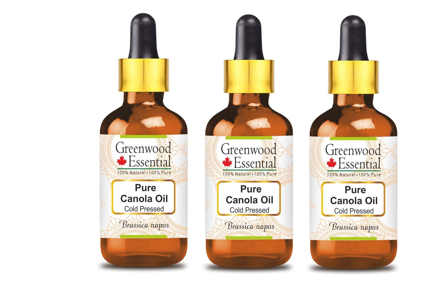 Greenwood Essential Pure Canola Oil (Brassica Napus) with Glass Dropper Cold Pressed (Pack of Three) 100ml X 3 (10 oz)