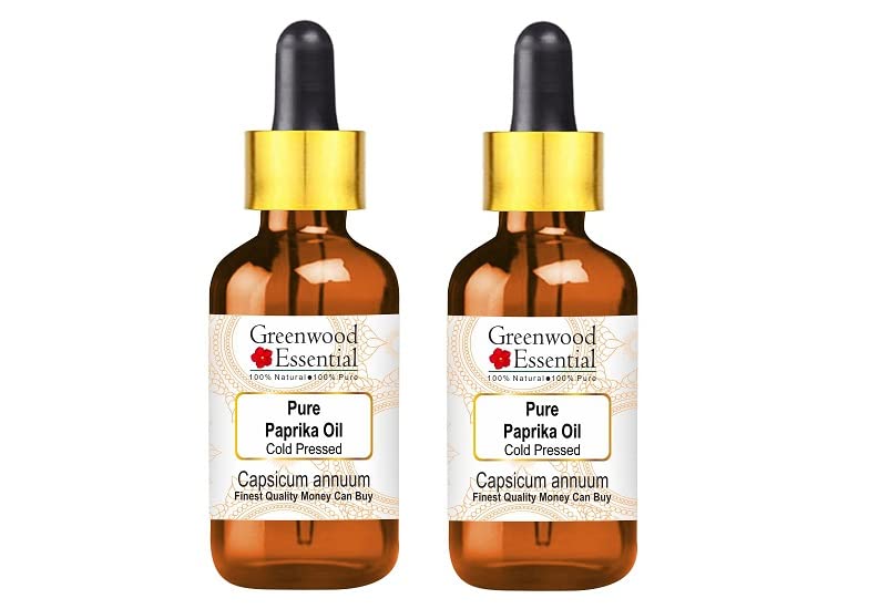 Greenwood Essential Pure Paprika Oil (Capsicum annuum) with Glass Dropper Cold Pressed (Pack of Two) 100ml X 2 (6.76 oz)