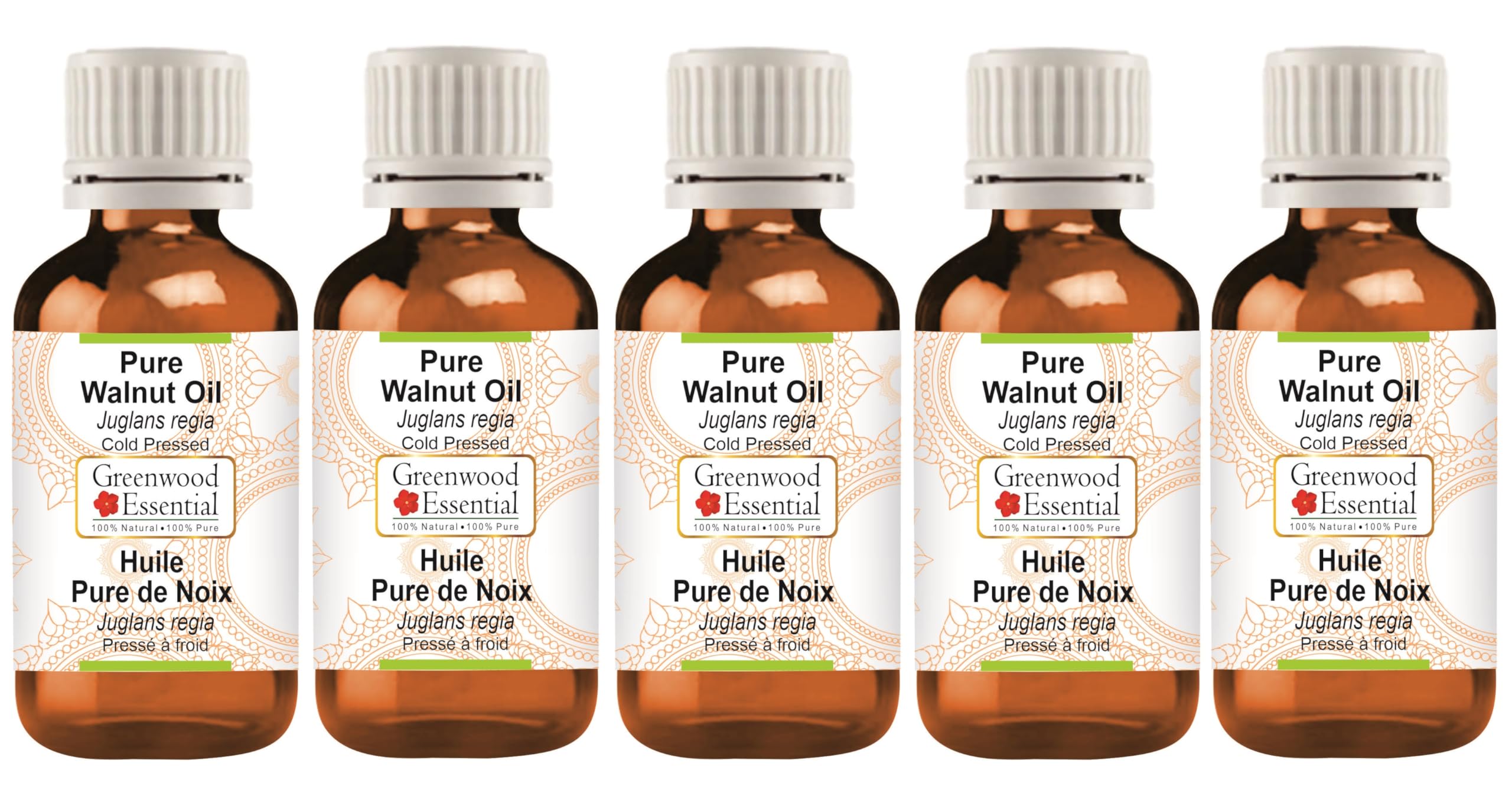 Greenwood Essential Pure Walnut Oil (Juglans regia) Cold Pressed (Pack of Five) 100ml X 5 (16.9 oz)