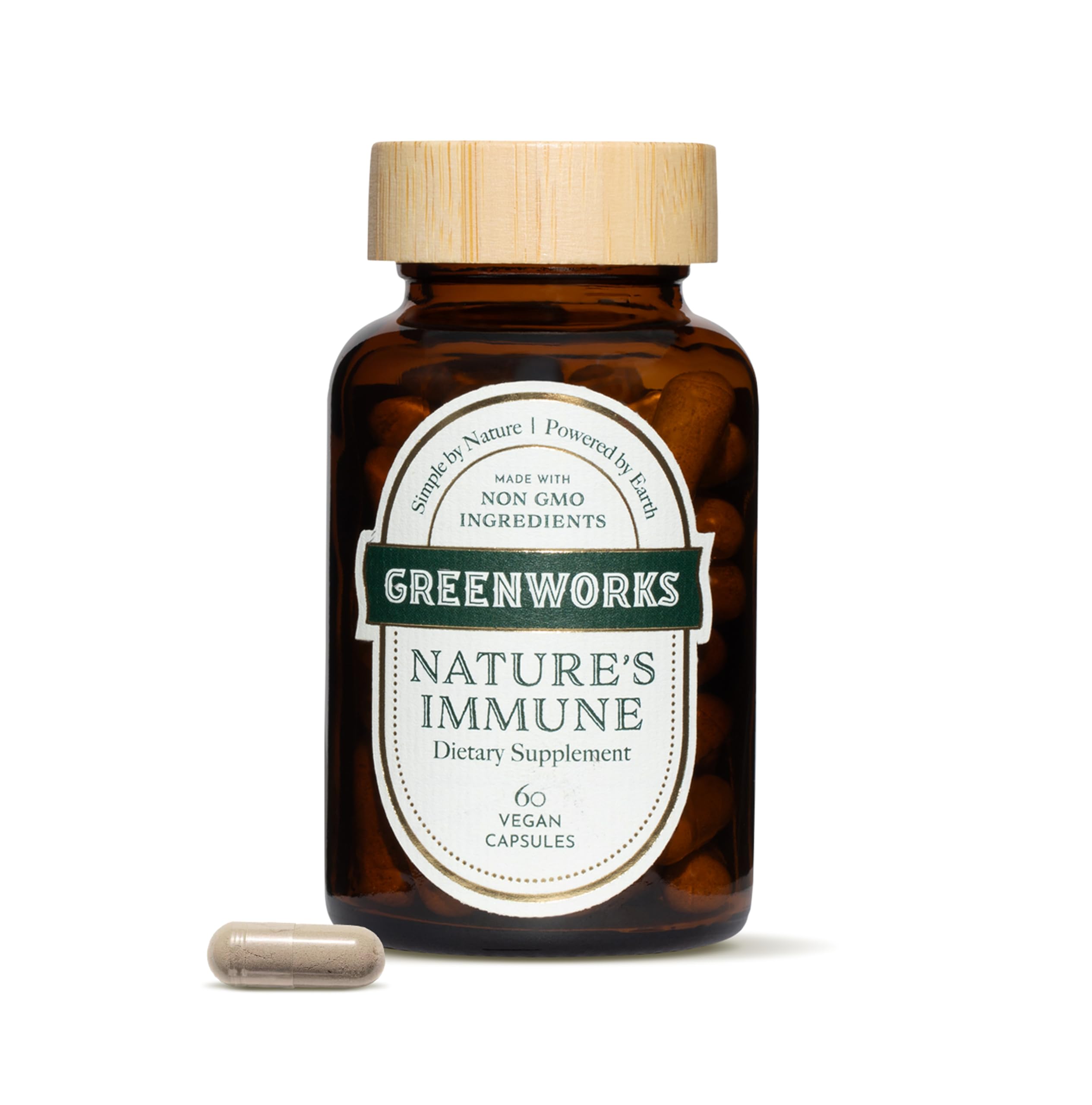 Greenworks Nature's Immune Organic Immune Support Supplement with Elderberry Echinacea Ginger Turmeric Oregano & Mushrooms - Vegan Capsules for Year-Round Wellness Non-GMO Gluten-Free 60 Count