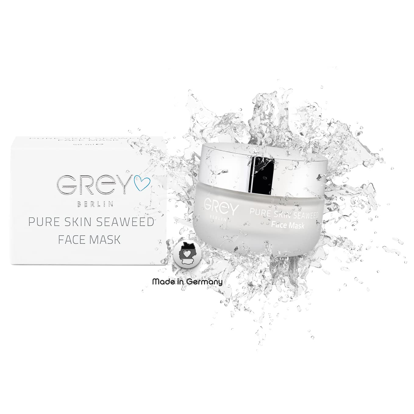 100 vegan natural cosmetics, made in Germany. Your care route: for healthy, radiant skin, it is best to use the mask 2-3 times a week. Apply them to the cleansed face, neck and décolleté and let them work for 10-15 minutes. Then simply remove them with lukewarm water for soft skin. Soothing – the mix of green clay, zinc oxide and magnolia extract also has an anti-inflammatory and antibacterial effect. Ideal for sensitive or blemish-prone skin. Moisturizing – the combined active ingredients from seaweed hydrate your skin and protect it against free radicals. Our algae are among nature's strongest antioxidants, stronger than Q10 and vitamin C. The Pure Skin Seaweed Face Mask from Gray Berlin stimulates tired skin and provides a radiant complexion, your quick wellness skin care at home.GREY Berlin Pure Skin Seaweed Gezichtsmasker, hydraterend anti-aging gezichtsmasker met IJslandse algen en groene kleiaarde, voor onzuivere huid, veganistische natuurlijke cosmetica, made in Germany100 veganistische natuurlijke cosmetica, made in Germany. Je verzorgingsroute: voor een gezonde, stralende huid gebruik je het masker het beste 2-3 keer per week. Breng ze aan op het gereinigde gezicht, hals en decolleté en laat ze 10-15 minuten inwerken. Verwijder ze daarna eenvoudig met lauw water voor een zachte huid. Rustgevend – de mix van groene kleiaarde, zinkoxide en magnolia-extract werkt bovendien ontstekingsremmend en antibacterieel. Ideaal voor de gevoelige of tot onzuiverheden neigende huid. Vochtinbrengend – door de gecombineerde werkzame stoffen uit zeewier wordt je huid gehydrateerd en beschermd tegen vrije radicalen. Onze algen behoren tot de sterkste antioxidanten van de natuur, sterker dan Q10 en vitamine C. Het Pure Skin Seaweed Face Mask van Grey Berlin stimuleert de vermoeide huid en zorgt voor een stralende teint, je snelle wellness-huidverzorging voor thuis.