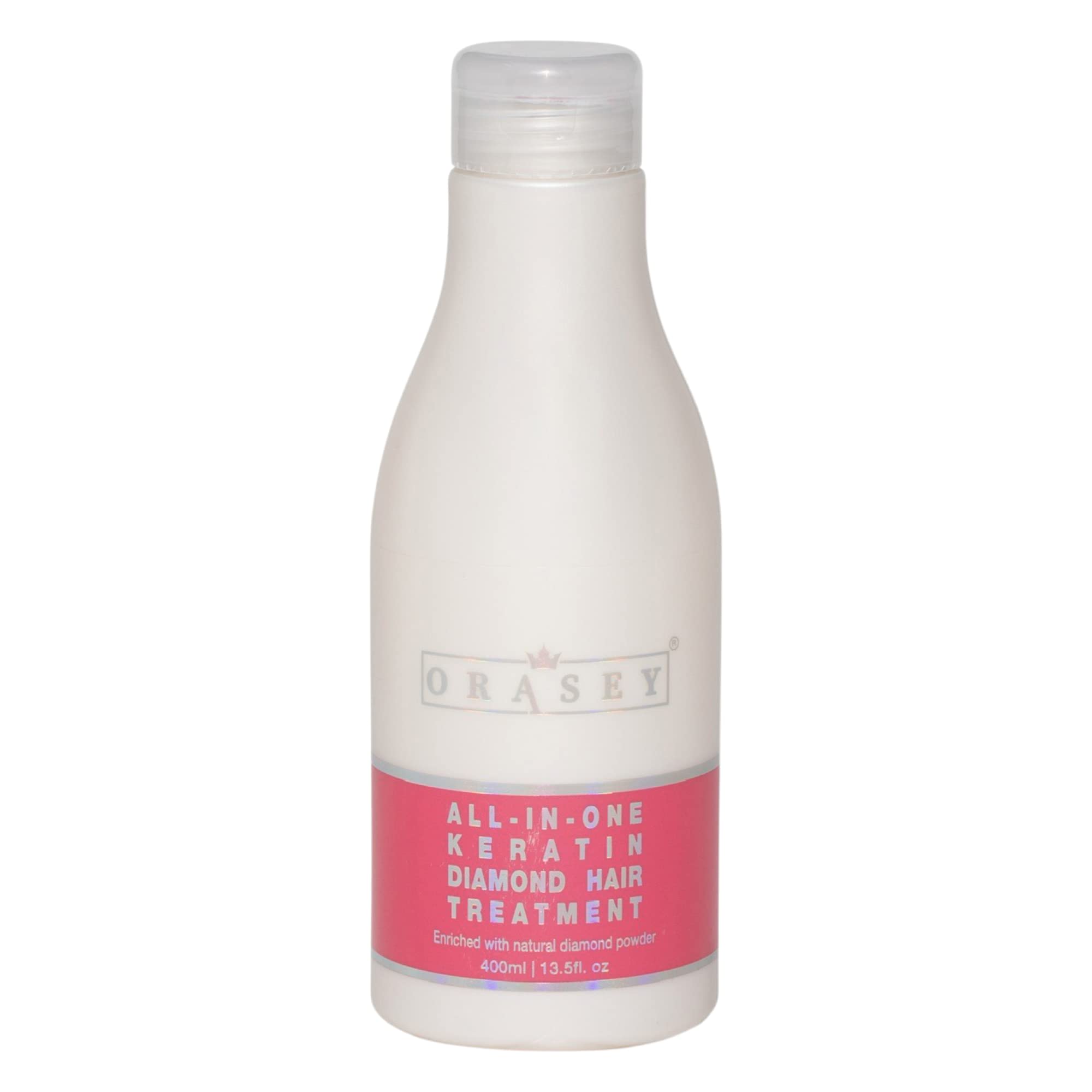Orasey keratin diamond treatment is a special technology made as a combination of keratin and diamond powder. The main part – keratin (primary proteins of the skin, hair and nails) and minerals from the Black Sea and vitamins A, C, E penetrate the hair structure and deeply regenerate them. Our formula is sulfate, silicone and paraben free, and is even vegan friendly. The treatment helps the hair reach its natural, healthy state and leaves it smooth without changing its texture. Product is suitable for all hair types, including chemically treated hair. The results are visible immediately after the treatment.Protects against heat, salt water, frost and rain. Gives the hair a brilliant, healthy and shiny look. Treats split ends and tames frizz. Smoothes hair for 2-3 months. Regenerates damaged hair.Alles-in-een keratine-diamantbehandeling, 400 ml, complex keratine kuur voor het gladmaken van het haar, voor alle haartypes Orasey keratine diamantbehandeling is een speciale technologie gemaakt als combinatie van keratine en diamantpoeder. Het hoofddeel – keratine (primaire eiwitten van de huid, haar en nagels) en mineralen uit de Zwarte Zee en vitamine A, C, E doordringen de haarstructuur en regenereren ze diep. Onze formule is sulfaat, siliconen en parabenvrij, is zelfs veganistisch vriendelijk. De behandeling helpt het haar zijn natuurlijke, gezonde toestand te bereiken en verlaat het glad zonder de textuur te veranderen. Product is geschikt voor alle haartypes, ook voor chemisch behandeld haar. De resultaten zijn direct na de behandeling zichtbaar.Beschermt tegen hitte, zout water, vorst en regen. Geeft het haar een briljante, gezonde en glanzende look. Behandelt gespleten haarpunten en taamt krozes. Maakt het haar 2-3 maanden glad. Regenereert beschadigd haar.