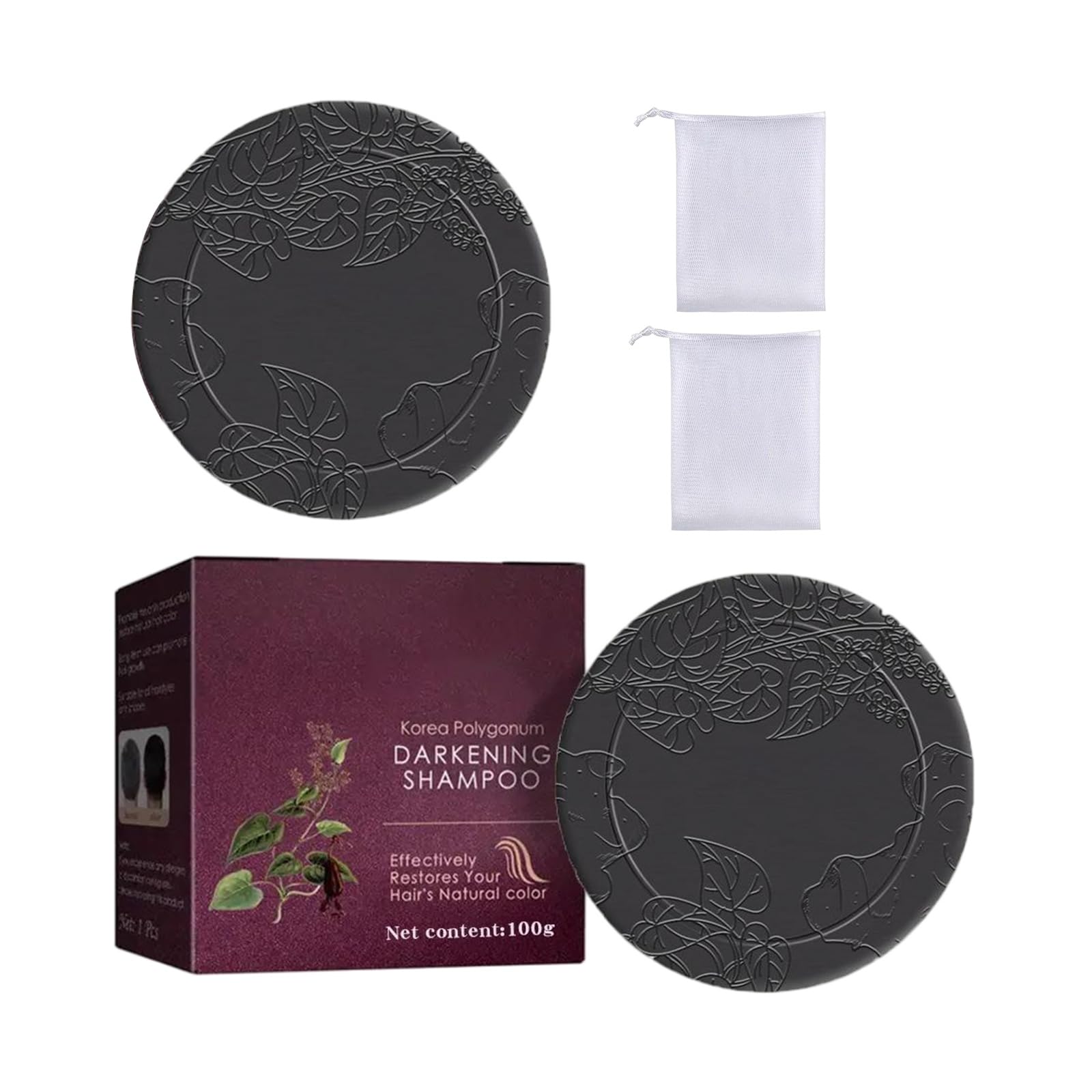 SAFETY WARNING NoEffortless daily care: Say goodbye to bulky bottles. A single compact bar of soap, paired with the included mesh pouch, provides quick and effective cleansing. Its ergonomic shape ensures a secure grip for lathering and rinsing. Reuse it anytime to keep your hair clean and silky. Color-safe cleansing: Whether you have ombré highlights or vibrant shades, this soap prevents residue buildup. It removes dust and sweat while respecting previous color treatments, slowing down fading between touch-ups. Scalp refreshment: Provides a refreshing and comfortable cleanse that effectively dissolves styling product residue and dirt accumulated during workouts. The soap rinses completely without leaving any residue, allowing hair to relax naturally and detangle easily without pulling. Simply glide the soap over wet roots, rinse thoroughly, and enjoy a voluminous, weightless result. Portable design: The solid formula prevents leaks in gym bags or suitcases, while the breathable drawstring pouch keeps it dry between uses. Its slim profile fits easily into travel toiletry bags, and the mesh pouch also acts as a non-slip cushion to prevent the soap from sliding down the drain. A rich, light, and creamy lather: The handcrafted soaps combined with a mesh pouch create a fine, creamy lather that removes excess oil while leaving hair soft and voluminous. Wet the pouch, place it over the soap, and rub to create lather. Massage the lather from roots to ends, then rinse for clean, light hair.2PC Hair Darkening Shampoo Bar, Soap Bar, Élimine Rapidement l'excès de Sébum pour plus de Volume, Nourrit et Hydrate, Aide à Prévenir la Chute des Cheveux, Convient à Tous les Types de CheveuxDESCRIPTION DU PRODUIT AVERTISSEMENT DE SÉCURITÉ NoSoin quotidien sans effort : dites adieu aux bouteilles encombrantes. Un seul savon compact associé à la pochette en filet incluse permet un nettoyage rapide et efficace. Sa forme ergonomique assure une prise en main sûre pour faire mousser et rincer. Réutilisez-le à tout moment pour garder des cheveux propres et soyeux. Nettoyage sans danger pour la couleur : que vous ayez des mèches ombrées ou des teintes vives, ce savon empêche l'accumulation de résidus. Il élimine la poussière et la sueur tout en respectant les traitements de couleur précédents, ralentissant ainsi la décoloration entre les retouches. Rafraîchissement du cuir chevelu : procure un nettoyage rafraîchissant et confortable qui dissout efficacement les résidus de produits coiffants et la saleté accumulée pendant l'entraînement. Le savon se rince complètement sans laisser de résidus, permettant aux cheveux de se détendre naturellement et de se démêler facilement sans tirer. Il suffit de faire glisser le savon sur les racines humides, de rincer abondamment et de profiter d'un résultat volumineux et léger. Conception portable : la formule solide empêche les fuites dans les sacs de sport ou les valises, tandis que la pochette à cordon respirante permet de la garder au sec entre deux utilisations. Son profil mince s'adapte facilement aux trousses de toilette de voyage, la pochette en filet servant également de coussin antidérapant pour empêcher le savon de glisser dans le siphon. Une mousse riche, légère et onctueuse : les savons artisanaux associés à une pochette en filet créent une mousse crémeuse et fine qui élimine l'excès de sébum tout en laissant les cheveux souples et volumineux. Mouillez la pochette, placez-la sur le savon et frottez pour créer de la mousse. Massez la mousse des racines aux pointes, puis rincez pour obtenir des cheveux propres et légers.