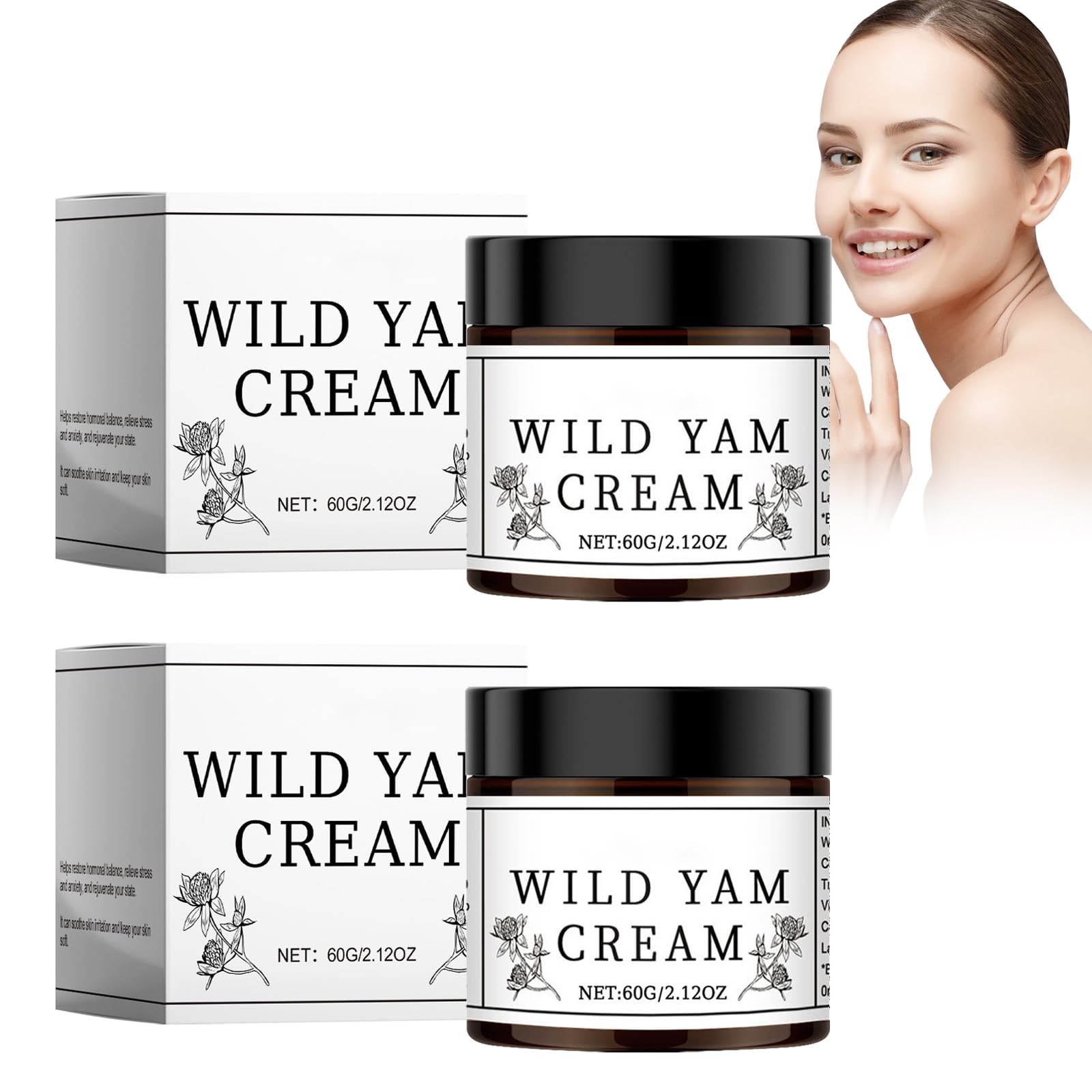 SAFETY WARNING NoDeep into the skin cells: Organic Wild Yam Cream not only nourishes the skin surface, but also penetrates deep into the skin cells to activate the skin's natural restorative powers. The unique formula stimulates collagen production, softens fine lines and wrinkles, gives the skin elasticity and radiance and gives it a natural glow. EASY TO APPLY: The yams cream for women has a light texture that is easily absorbed into the skin without leaving a greasy feeling. Whether it's on a warm summer day or a dry winter day, it absorbs quickly and provides the skin with the nutrients and moisture it needs for a lightweight skincare experience. EASY TO APPLY: The yams cream for women has a light texture that is easily absorbed into the skin without leaving a greasy feeling. Whether it's on a warm summer day or a dry winter day, it absorbs quickly and provides the skin with the nutrients and moisture it needs for a lightweight skincare experience. Moisturizing and soothing: Organic Wild Yam Cream is a natural barrier for the skin that penetrates deep into the skin and continuously nourishes it. It helps to relieve the symptoms associated with the internal changes and thus promotes the woman's inner harmony. It is designed to restore hormonal balance and give you back control of your body. Moisturizing and soothing: Organic Wild Yam Cream is a natural barrier for the skin that penetrates deep into the skin and continuously nourishes it. It helps to relieve the symptoms associated with the internal changes and thus promotes the woman's inner harmony. It is designed to restore hormonal balance and give you back control of your body.Instant 2Pc Organische Wilde Yam Crème, Yam Wortelcrème Voor Vrouwen, Bio Wilde Yamswurzel Crème, Hormonausgleich Hautschutz, Anti-Rimpels, Hydraterend Voor Menopauze Pms VEILIGHEIDSWAARSCHUWING NoDiep in de huidcellen: Biologische Wild Yam Cream voedt niet alleen het huidoppervlak, maar dringt ook diep door in de huidcellen om de natuurlijke herstellende krachten van de huid te activeren. De unieke formule stimuleert de collageenproductie, verzacht fijne lijntjes en rimpels, geeft de huid elasticiteit en uitstraling en geeft het een natuurlijke glans. GEMAKKELIJK AAN TE BRENGEN: De yamscrème voor vrouwen heeft een lichte textuur die gemakkelijk in de huid wordt opgenomen zonder een vettig gevoel achter te laten. Of het nu op een warme zomerdag of een droge winterdag is, het trekt snel in en voorziet de huid van de voedingsstoffen en het vocht die het nodig heeft voor een lichtgewicht huidverzorgingservaring. GEMAKKELIJK AAN TE BRENGEN: De yamscrème voor vrouwen heeft een lichte textuur die gemakkelijk in de huid wordt opgenomen zonder een vettig gevoel achter te laten. Of het nu op een warme zomerdag of een droge winterdag is, het trekt snel in en voorziet de huid van de voedingsstoffen en het vocht die het nodig heeft voor een lichtgewicht huidverzorgingservaring. Hydraterend en verzachtend: Biologische Wild Yam Cream is een natuurlijke barrière voor de huid die diep in de huid doordringt en deze continu voedt. Het helpt de symptomen die gepaard gaan met de interne veranderingen te verlichten en bevordert zo de innerlijke harmonie van de vrouw. Het is ontworpen om de hormonale balans te herstellen en je de controle over je lichaam terug te geven. Hydraterend en verzachtend: Biologische Wild Yam Cream is een natuurlijke barrière voor de huid die diep in de huid doordringt en deze continu voedt. Het helpt de symptomen die gepaard gaan met de interne veranderingen te verlichten en bevordert zo de innerlijke harmonie van de vrouw. Het is ontworpen om de hormonale balans te herstellen en je de controle over je lichaam terug te geven.