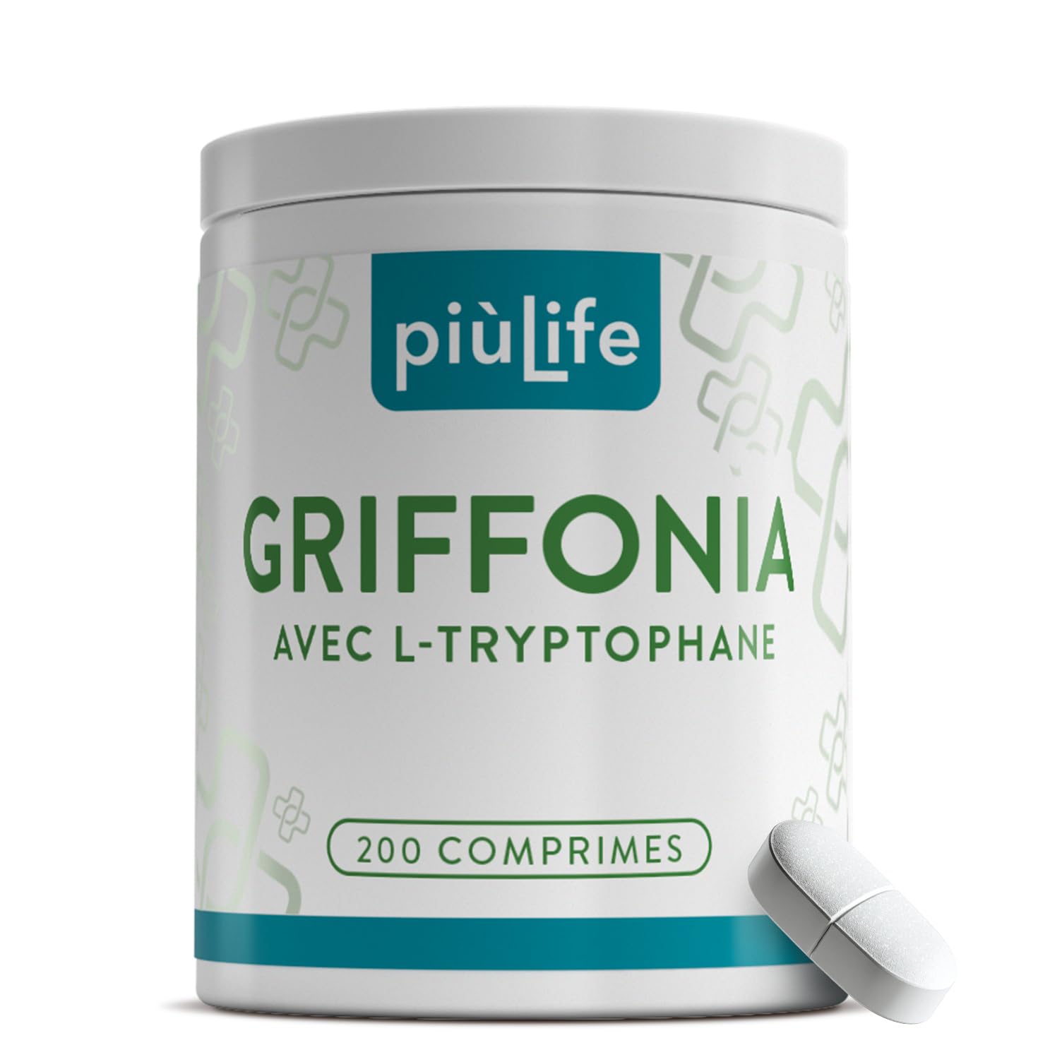 Griffonia Simplicifolia Tryptophane PiùLife, 400 mg par comprimé avec 50 mg L tryptophane – Précurseur de Serotonine Melatonine – Dormir Mieux, Bonne Humeur, Anxiete Stress – Source naturelle de 5-HTP 200 unité (Lot de 1)