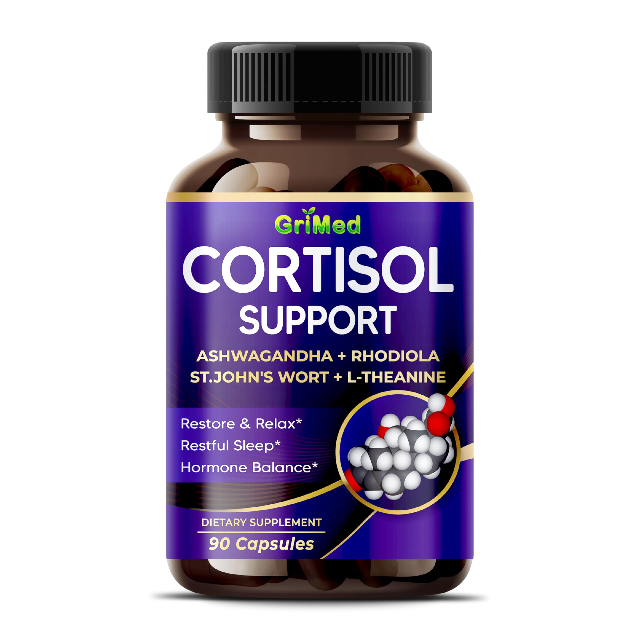 GriMed Ashwagandha Rhodiola - x 10 Power with St.John's Wort, L-Theanine - Restore Relax, Restful Sleep (90 Count (Pack of 1))100 Guarantee: At GriMed, we always strive to give customers the highest level of satisfaction. With superior herbal ingredients, cGMP facility to make sure what you put into your body is the safest and most effective. If you are not pleased, you are fully protected by the money-back guarantee, no questions asked. Quality - First and Paramount: All ingredients in GriMed supplements are chosen carefully from reliable sources and tested strictly by third-party ISO 17025-accredited labs to ensure purity and safety. They are 100 natural and do not contain any gluten, sugar, wheat, gelatin, artificial colors, or GMOs. So you can safely use the product without having to worry about the origin of the ingredients. Innovative Fusion: Grimed Cortisol Support presents an exceptional blend of 6 valuable herbs encapsulated in a single capsule. These include Ashwagandha, St. John's Wort, Rhodiola Rosea, L-Theanine, Phosphatidylserine, and Black Pepper. This unique combination significantly reinforces your body's ability to manage stress and elevate your holistic wellness. Say goodbye to juggling multiple supplements – just one Grimed Psyllium Husk capsule daily delivers remarkable results. SUPREME EXTRACTION: Grimed Blend features the highest-quality herbs available in the market, with an astonishing Ashwagandha and an exceptional of St. John's Wort and Rhodiola Rosea, elevating the blend's potency and efficacy. Unlike other products, Grimed Cortisol Support is not merely a combination of ingredients but rather a meticulously developed formula designed to significantly enhance your performance. Unparalleled Benefit: GriMed Cortisol Support offers an extraordinary of raw powder in each serving, aimed at fostering rejuvenation, promoting relaxation, enhancing restful sleep, and assisting in maintaining optimal cortisol levels - a potent hormone released during stressful periods. With 90 capsules per bottle, it ensures a 3-month supply. Regular usage of GriMed Cortisol Support will yield noticeable and impressive results.