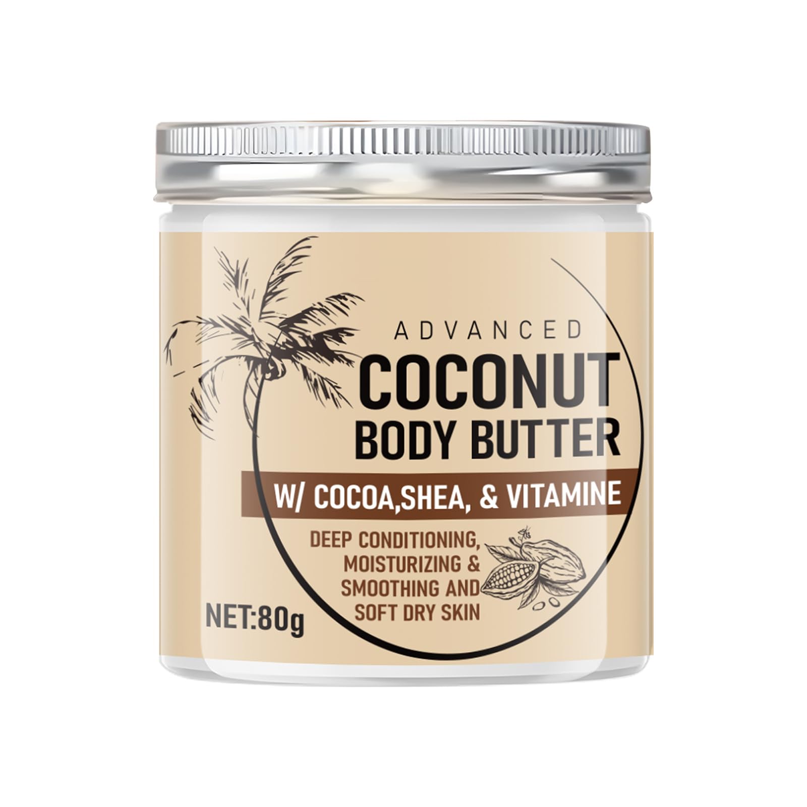 How to Use :For best results, apply body butter evenly to clean, dry skin. Gently massage until fully absorbed, and enjoy its soothing benefits for your skin. Suitable for All Skin Types :Lightweight, soft, and hydrating, it absorbs quickly without leaving a heavy or greasy residue. Suitable for all skin types, it delivers a perfect skincare experience, making it the ideal choice for your daily routine. Deep Moisturizing :Enriched with plant extracts such as coconut oil and shea butter, it strengthens the skin barrier, prevents dryness and flaking, and leaves skin soft and smooth. Improve Skin Elasticity :Provides rich nourishment for the skin. With continued use, it enhances skin softness and elasticity, restoring vitality and a healthy glow. Coconut Body Butter :Specifically formulated to address skin discomfort and dryness, this rich and potent formula rapidly nourishes and plumps the skin, leaving it smoother and firmer for a more confident, youthful appearance.