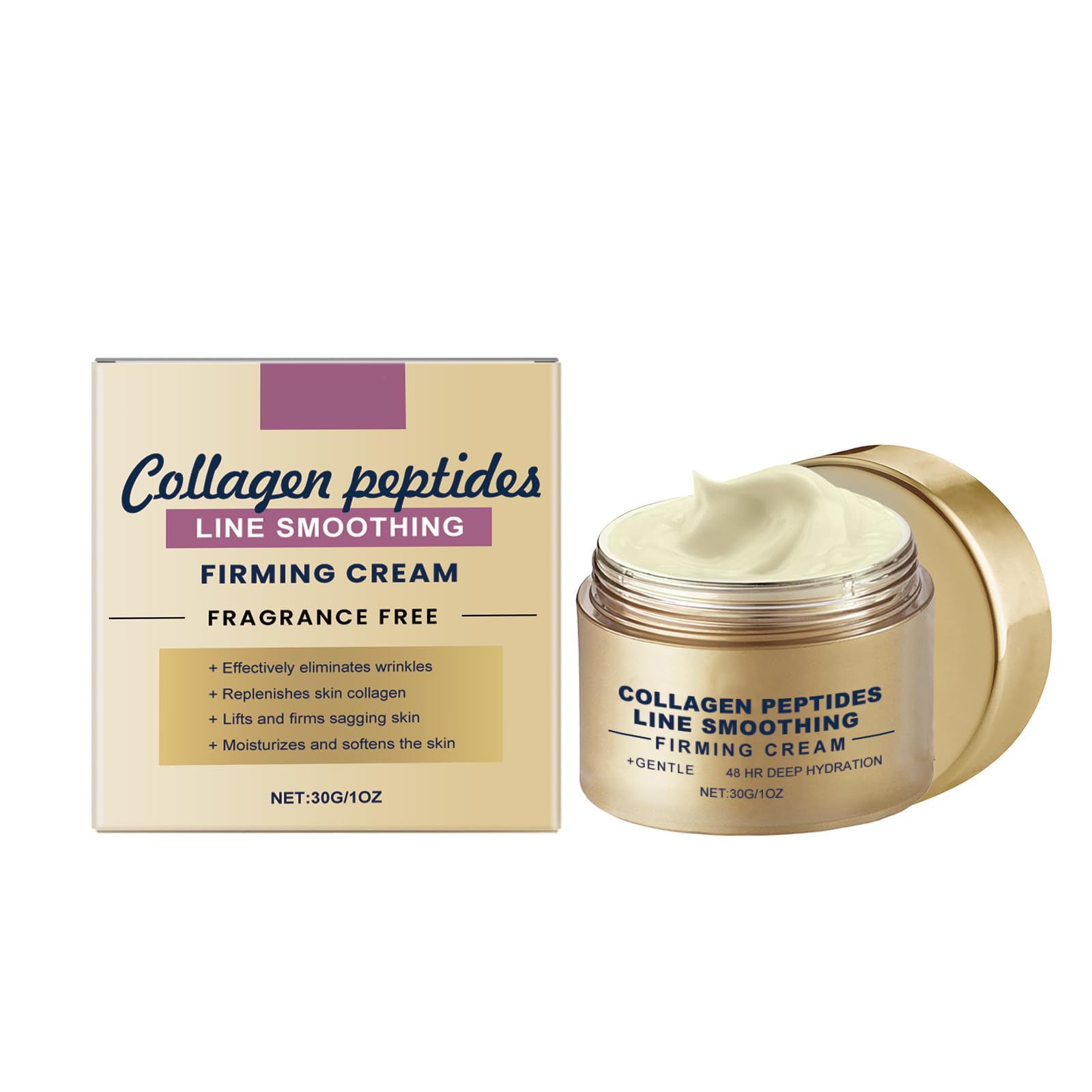 Description: Item Type:Collagen Peptides Line Smoothing Firming Cream Net Content:30G Target Area: Face, Neck, Thighs And Other Parts Of The Body Gender: Unisex Our Collagen Peptide Firming Face Cream Is A Highly Effective Moisturizer Designed Specifically For The Skin, Featuring High-Quality Ingredients Such As Collagen, Acetyl Tripeptide-1, And Retinol. Not Only Does It Significantly Improve Wrinkles And Fine Lines, But It Also Deeply Hydrates The Skin, Providing Lasting Moisture. The Application Method Is Straightforward: First, Thoroughly Cleanse And Dry Your Skin, Then Take An Appropriate Amount Of The Product And Evenly Apply It To The Face, Neck, Thighs, And Other Body Areas, Finishing With A Gentle Massage To Promote Better Absorption. Whether As Part Of Your Daily Skincare Routine Or As A Solution For Skin Firming And Lifting, This Face Cream Is Your Ideal Choice. Experience The Perfect Combination Of Collagen Face Cream And Skin Tightening For A Youthful Glow.