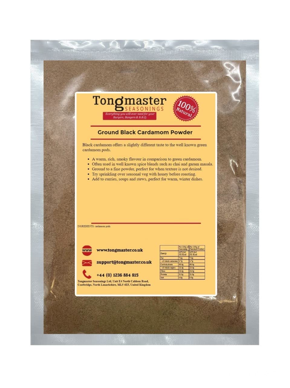 Try sprinkling over seasonal veg with honey before roasting. Ground to a fine powder, perfect for when texture is not desired. Often used in well known spice blends such as chai and garam masala. A warm, rich, smoky flavour in comparison to green cardamom. Black cardamom offers a slightly different taste to the well known green cardamom pods.