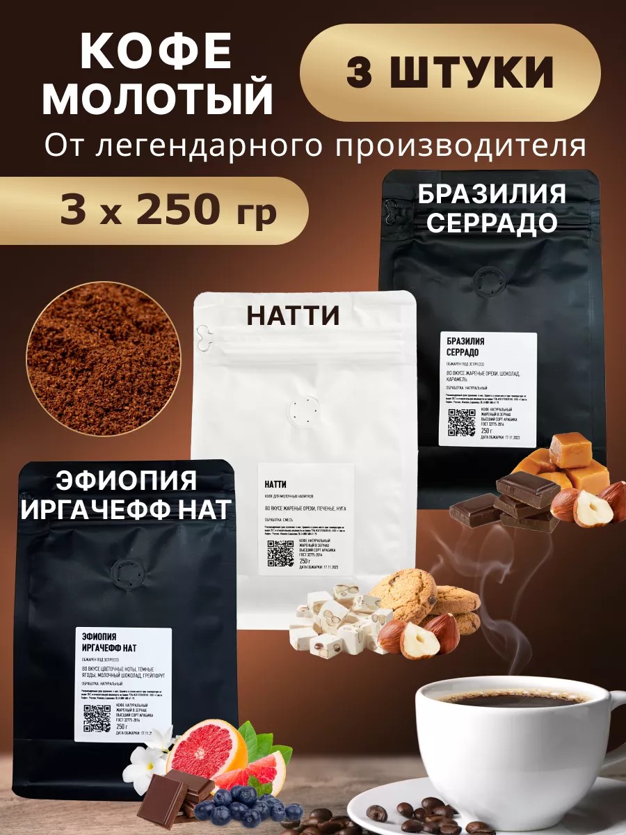 Молотый кофе 3х250гр Серрадо, Натти, Эфиопия