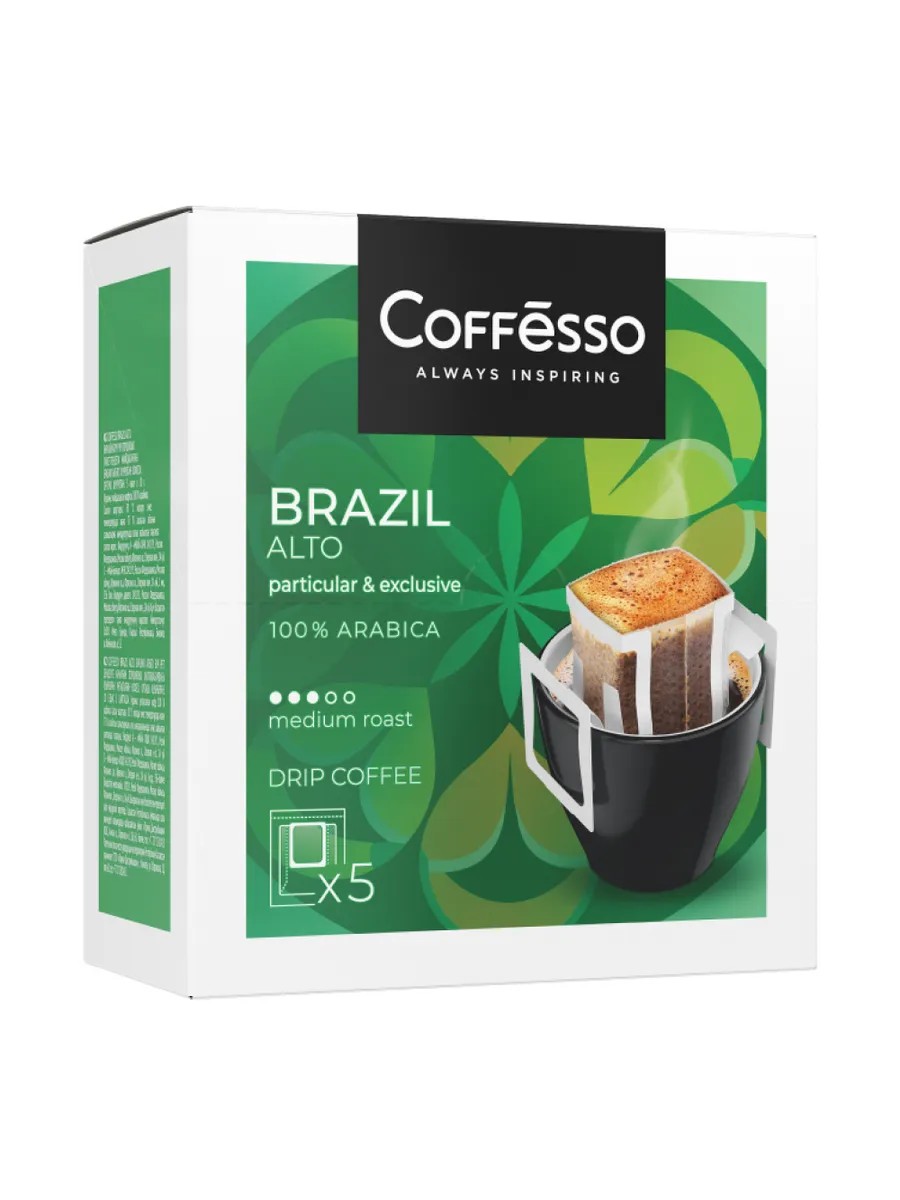Coffesso Brazil Alto в дрип-пакетах - это ваш путь к незабываемому кофейному опыту.
