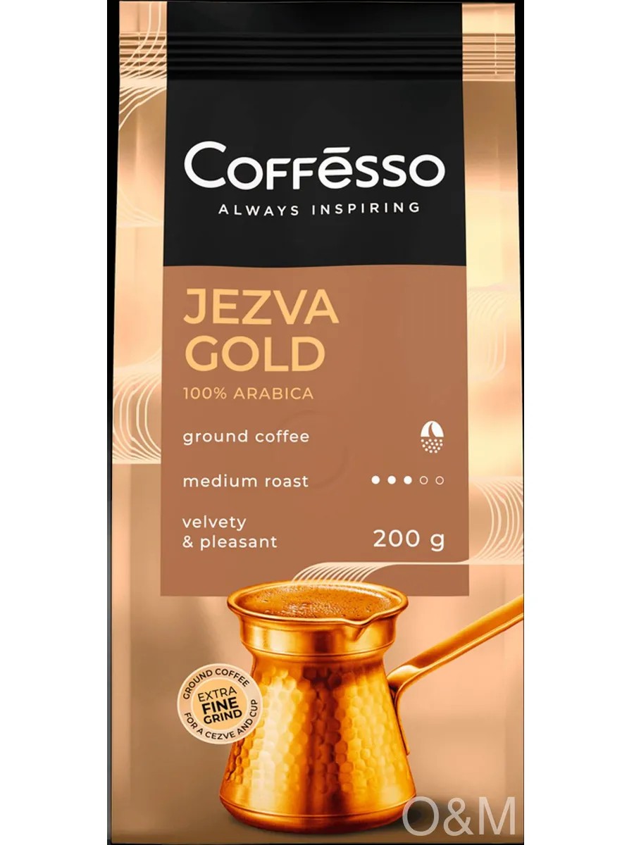 COFFESSO Jezva Gold 100% Arabica ground coffee is specially created for brewing in a Turkish coffee pot or in a cup for lovers of a rich and pure coffee taste. This specially ground 100% Arabica coffee with a velvety body and a long, pleasant aftertaste makes a cup of coffee the perfect start to a new day. The pleasure and energy of ground coffee will satisfy even the most discerning tastes and allow you to enjoy a high-quality beverage.