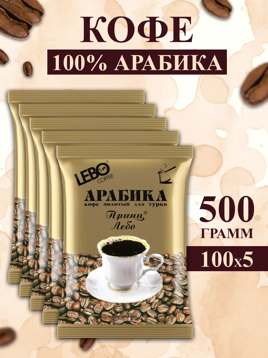 Lebo Кофе молотый "Лебо Принц" для турки, 100% Арабика, 5 штх100г