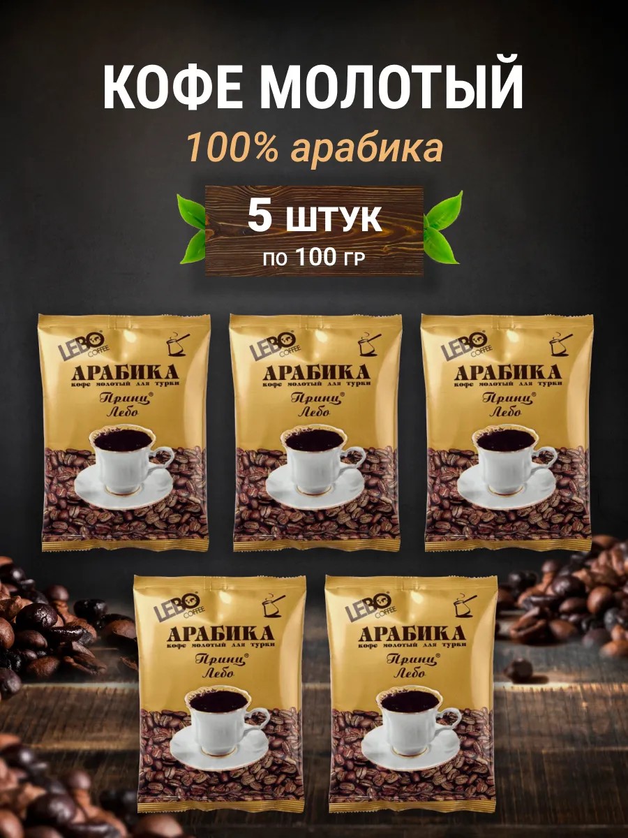 Lebo Кофе молотый "Лебо принц" набор 5 шт по 100 гр