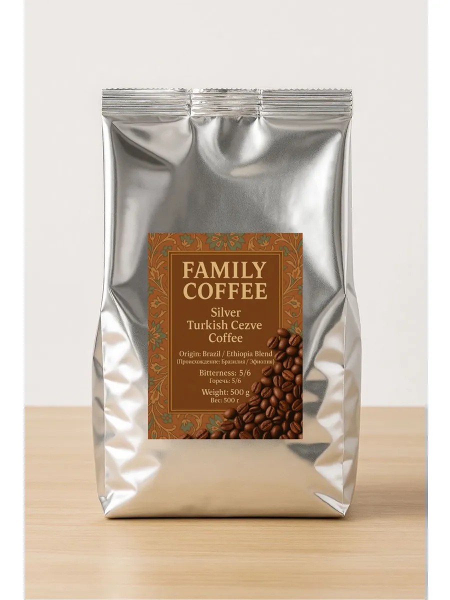 Fragrant ground coffee FAMILY COFFEE is created specifically for brewing in a Turk (cezve).