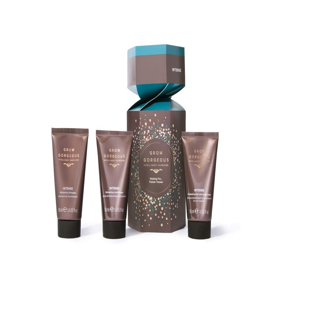 Grow Gorgeous Intense thickening haircare regime for gorgeous hair that feels denser, fuller and looking healthy. INGREDIENTS Shampoo: AQUA WATER EAU, SODIUM COCOYL ISETHIONATE, SODIUM METHYL COCOYL TAURATE, COCAMIDOPROPYL BETAINE, FRAGRANCE (PARFUM), CAFFEINE, SODIUM CHLORIDE, ACRYLATES C10-30 ALKYL ACRYLATE CROSSPOLYMER, INOSITOL, COCONUT ACID, LAURYL GLUCOSIDE, PANTHENOL, NIACINAMIDE, SODIUM BENZOATE, SODIUM PCA, SODIUM LACTATE, HYDROLYZED RICE PROTEIN, ARGININE, POTASSIUM SORBATE, SODIUM ISETHIONATE, GLYCERIN, ASPARTIC ACID, POLYQUATERNIUM-10, PCA, DISODIUM EDTA, ALLANTOIN, PHYTANTRIOL, SODIUM HYDROXIDE, GLYCINE, ALANINE, UREA, SERINE, VALINE, BENZYL ALCOHOL, DISODIUM PHOSPHATE, LIMONENE, LINALOOL, ISOLEUCINE, PROLINE, THREONINE, BIOTIN, CENTELLA ASIATICA EXTRACT, HISTIDINE, PHENYLALANINE, CITRIC ACID. Conditioner: Aqua Water Eau, Cetearyl Alcohol, Niacinamide, Fragrance (Parfum), Glycol Distearate, Caffeine, Stearamidopropyl Dimethylamine, Behentrimonium Chloride, Phenoxyethanol, Panthenol, Lactic Acid, Avena Sativa (Oat) Kernel Oil, Sodium PCA, Sodium Lactate, Hydrolyzed Rice Protein, Brassica Campestris (Rapeseed) Seed Oil, Isopropyl Alcohol, Arginine, Aspartic Acid, Urea, PCA, Chlorphenesin, Allantoin, Emblica Officinalis (Amla) Fruit Extract, Phytantriol, Trisodium Ethylenediamine Disuccinate, Disodium Phosphate, Sesamum Indicum (Sesame) Seed Oil, Glycine, Alanine, Biotin, Caramel, Serine, Valine, Butylphenyl Methylpropional, Citric Acid, Limonene, Linalool, Benzyl Alcohol, Isoleucine, Proline, Threonine, Rhizobian Gum, Sodium Hyaluronate, Histidine, Phenylalanine, Potassium Sorbate, Sodium Benzoate, Sodium Hydroxide. Mask: AQUA WATER EAU, CETEARYL ALCOHOL, FRAGRANCE (PARFUM), PISUM SATIVUM (PEA) PEPTIDE, BEHENTRIMONIUM CHLORIDE, CAFFEINE, CETRIMONIUM CHLORIDE, HYDROGENATED CASTOR OIL SEBACIC ACID COPOLYMER, PROPYLENE GLYCOL, PHENOXYETHANOL, PEG-100 STEARATE, GLYCERYL STEARATE, AVENA SATIVA (OAT) KERNEL OIL, BUTYROSPERMUM PARKII (SHEA) BUTTER, COCOS NUCIFERA (COCONUT) OIL, SODIUM PCA, ISOPROPYL ALCOHOL, SODIUM LACTATE, ARGININE, DISODIUM EDTA, GLYCERIN, HYDROLYZED JOJOBA ESTERS, ASPARTIC ACID, PCA, CHLORPHENESIN, ALLANTOIN, NIACINAMIDE, UREA, LEUCONOSTOC RADISH ROOT FERMENT FILTRATE, GLYCINE, ALANINE, DISODIUM PHOSPHATE, SERINE, CITRIC ACID, VALINE, LIMONENE, LINALOOL, BIOTIN, ISOLEUCINE, PROLINE, THREONINE, RHIZOBIAN GUM, SODIUM HYALURONATE, HISTIDINE, PHENYLALANINE, SODIUM HYDROXIDE. DIRECTIONS Use as part of the Intense haircare routine. Shampoo: Work a generous amount into wet hair. Lather well, massaging from the scalp through to ends. Rinse thoroughly. Conditioner: After using Thickening Shampoo, smooth through the mid-lengths and ends of your hair. Leave for 1-2 minutes. Rinse thoroughly. For a deeper conditioning treatment, massage into your roots, then rinse. Mask: After using Thickening Shampoo, apply to damp hair for an intense treatment. Massage the product onto your scalp then smooth through the lengths and ends of your hair. Leave for ten minutes. Rinse thoroughly. Use 1-2 times per week. See moreGrow Gorgeous. Beauty. Grow Gorgeous Intense thickening haircare regime for gorgeous hair that feels denser, fuller and looking healthy. Grow Gorgeous Intense thickening haircare regime for gorgeous hair that feels denser, fuller and looking healthy.