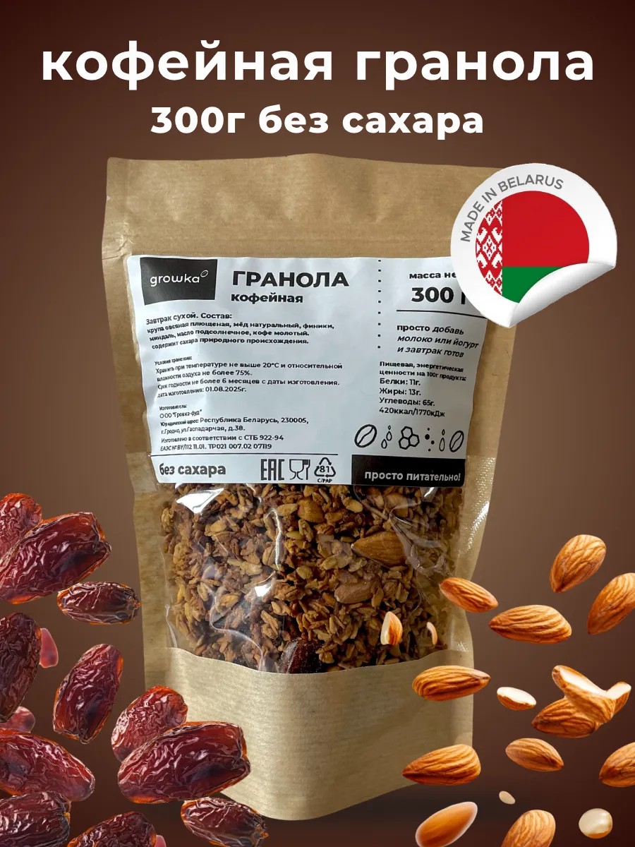 Growka - это бренд белорусских продуктов, который мы создали специально для тех, кто следит и с любовью относится к своему здоровью. Наша гранола Growka удивит вас не только своим вкусом, но и натуральным составом.