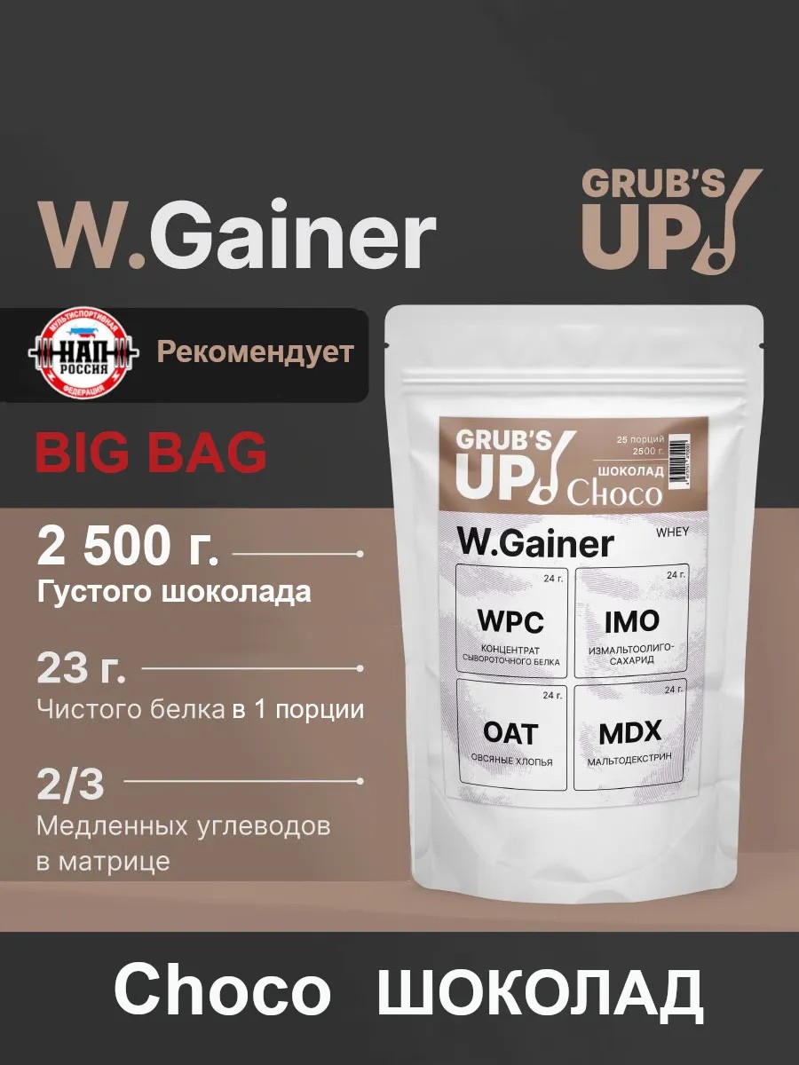 Вкусный шоколадный десерт, который содержит все полезные нутриенты классического Grub's up! W.Gainer - 23гр белка на порцию и 2/3 медленных углеводов в матрице.