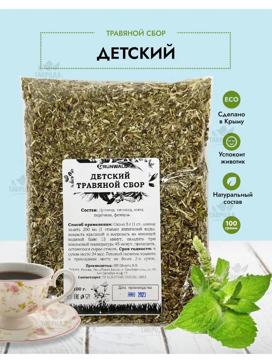 Детский травяной сбор используют в качестве дополнительного питья для детей от шести месяцев. Прекрасное сочетание трав в ароматном напитке окажут направленное. но в то же время мягкое действие: успокоит животик и наполнит теплом. снимет эмоциональное напряжение и подарит цветные сны вашему малышу. улучшит пищеварение. Способ приготовления: одну десертную ложку сбора залить стаканом кипятка и дать настояться 15-20 минут. Процедить и перед применением остудить до комнатной температуры. Детям с 6 месяцев до 3 лет -пол стакана в сутки. детям старше 3 лет -один стакан в сутки в качестве дополнительного питья. Готовый напиток хранить в прохладном месте не более 2-х суток.
