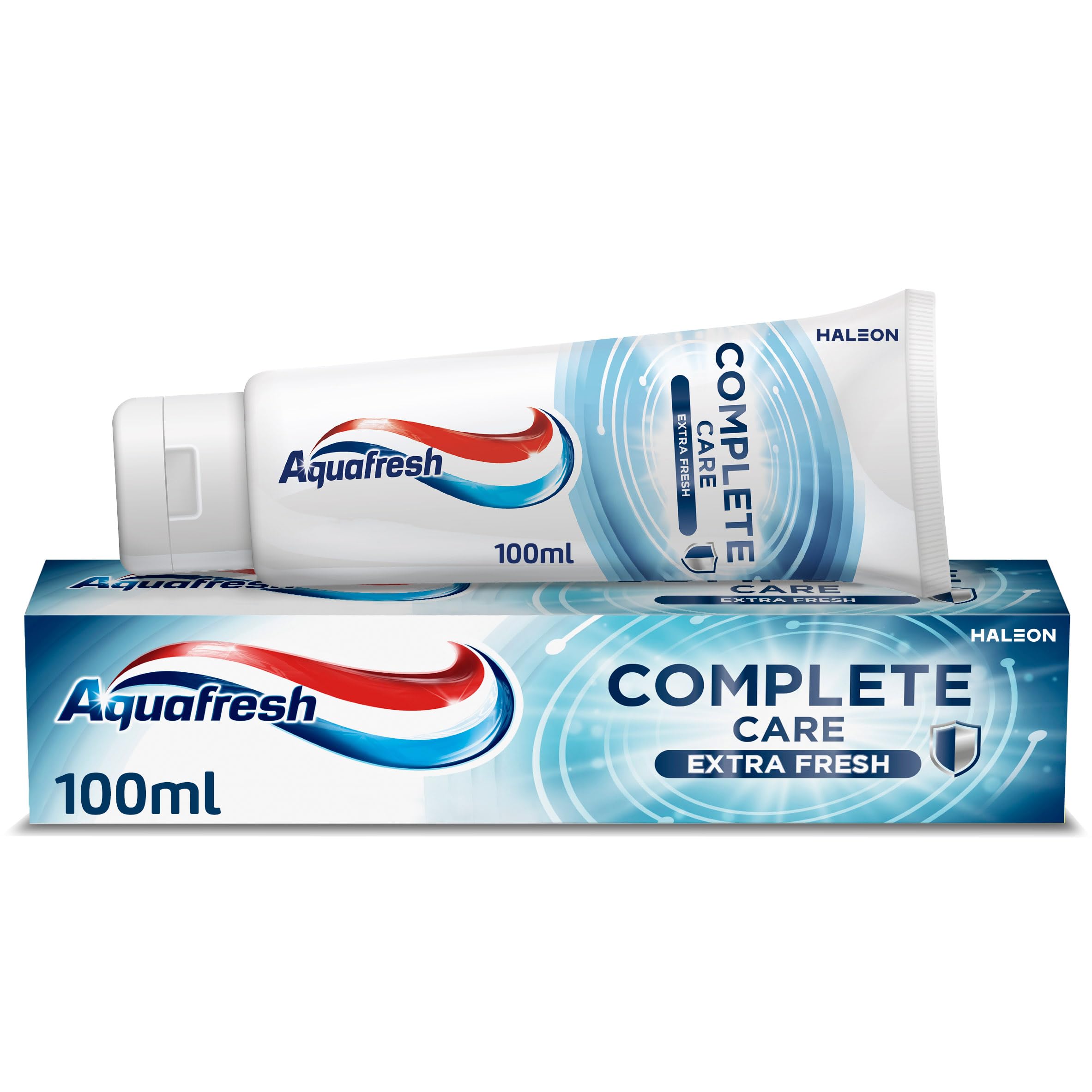 Go beyond freshening - cleanse your breath. Aquafresh Complete Care Extra Fresh fluoride toothpaste reduces 80 of bad breath odors immediately after brushing to protect your teeth and also clean your entire mouth. Aquafresh Complete Care Extra Fresh fluoride toothpaste is tough on tooth decay and provides advanced triple protection for the whole family in a fresh mint flavor they will enjoy. It fights cavities, plaque on the gum line , bacteria, stains, bad breath, acid attack and enamel erosion. Aquafresh Complete Care Extra Fresh fluoride toothpaste helps reduce bad breath odors at the source and destroys bacteria in hard-to-reach areas of the mouth: teeth, tongue and gums. Our cavity-fighting toothpaste kills bacteria that cause bad breath and strengthens tooth enamel, even after you stop brushing . immediately after brushing compared to a non-antibacterial toothpaste. with brushing twice a day. INGREDIENTS Aqua, Hydrated Silica, Sorbitol, Glycerin, PEG-6, Sodium Lauryl Sulfate, 0.315 w w (1450 ppm fluoride). As we are always looking to improve our products, our formulations may change from time to time, so always check the product packaging before use. INSTRUCTIONS FOR USE Always follow label directions: brush twice a day and no more than three times, minimize swallowing and spit out. Keep out of the reach of children. Children 6 years and younger: Use a pea-sized amount for supervised brushing to minimize swallowing. If you ingest fluoride from other sources, consult a dentist or doctor. If irritation occurs, discontinue use. The ends of this box are glued. Do not use if the ends of the carton are open. SAFETY WARNING For external use. Don't swallow. Keep out of the reach of children. If you are irritated, discontinue use and consult a dentist. MANUFACTURER CONTACT INFORMATION Haleon, Building 5, First Floor The Heights Weybridge Surrey KT13 0NY See moreADVANCED TRIPLE PROTECTION FOR THE WHOLE FAMILY: The family will enjoy a fresh mint flavor. Strengthens enamel: Aquafresh Complete Care Extra Fresh toothpaste provides all the benefits of a daily fluoride family toothpaste and strengthens enamel even after you stop brushing . FIGHTS THE SOURCE OF BAD BREATH: Go beyond freshening - cleanse your breath. Aquafresh Complete Care Extra Fresh fluoride toothpaste contains a mineral compound that neutralizes bad breath-causing bacteria for cleaner breath and an 80 cleaner mouth. FIGHTS AGAINST: Cavities, gum line plaque , bacteria, stains, bad breath, acid attack and enamel erosion.Aquafresh Complete Care Extra Verse Flouride Tandpasta, 100ml (Pack van 1) 100 ml (Pack of 1) Ga verder dan het verfrissen - reinig je adem. Aquafresh Complete Care Extra Fresh fluoride tandpasta vermindert 80 van de slechte adem geuren direct na het poetsen om je tanden te beschermen en ook je hele mond te reinigen. Aquafresh Complete Care Extra Fresh fluoride tandpasta is taai voor tandbederf en biedt geavanceerde drievoudige bescherming voor het hele gezin in een frisse muntsmaak waar ze van zullen genieten. Het bestrijdt gaatjes, tandplak op de tandvleeslijn , bacteriën, vlekken, slechte adem, zuuraanval en erosie van het glazuur. Aquafresh Complete Care Extra Fresh fluoride tandpasta helpt slechte adem geuren bij de bron te verminderen en vernietigt bacteriën in moeilijk bereikbare delen van de mond: tanden, tong en tandvlees. Onze tandpasta die de holte bestrijdt, doodt bacteriën die slechte adem veroorzaken en versterkt het tandglazuur, zelfs nadat u bent gestopt met poetsen . onmiddellijk na het poetsen in vergelijking met een niet-antibacteriële tandpasta. met twee keer per dag poetsen. INGREDIËNTEN Aqua, gehydrateerd silica, sorbitol, glycerine, PEG-6, natriumlaurylsulfaat, xanthaangom, aroma, cocamidopropylbetaïne, natriumcitraat, natriumsaccharine, limoneen, natriumfluoride, zinkchloride, citral, CI 73360, CI 74160, CI 74260, CI 74260. Bevat: Natriumfluoride 0,315 w w (1450 ppm fluoride). Omdat we altijd op zoek zijn naar verbetering van onze producten, kunnen onze formuleringen van tijd tot tijd veranderen, dus controleer altijd de verpakking van het product voor gebruik. GEBRUIKSAANWIJZING Volg altijd de aanwijzingen op het etiket: borstel twee keer per dag en niet meer dan drie keer, minimaliseer het slikken en spuug uit. Buiten het bereik van kinderen bewaren. Kinderen van 6 jaar en jonger: gebruik een hoeveelheid ter grootte van een erwt om onder toezicht te poetsen om het slikken te minimaliseren. Raadpleeg bij inname van fluoride uit andere bronnen een tandarts of arts. Als irritatie optreedt, stop dan met het gebruik. De uiteinden van deze doos zijn vastgelijmd. Niet gebruiken als de uiteinden van de doos open zijn. VEILIGHEIDSWAARSCHUWING Voor uitwendig gebruik. Niet slikken. Buiten het bereik van kinderen bewaren. Als u geïrriteerd bent, stop dan met het gebruik en raadpleeg een tandarts. CONTACTINFORMATIE FABRIKANT Haleon, Gebouw 5, Eerste verdieping de hoogten Weybridge Surrey KT13 0NY Meer bekijkenGEAVANCEERDE DRIEVOUDIGE BESCHERMING VOOR HET HELE GEZIN: in een frisse muntsmaak zal de familie genieten. Versterkt email: Aquafresh Complete Care Extra Fresh tandpasta biedt alle voordelen van een dagelijkse fluoridefamilie tandpasta en versterkt het glazuur, zelfs nadat je bent gestopt met poetsen . BESTRIJDT DE BRON VAN SLECHTE ADEM: Ga verder dan het verfrissen - reinig je adem. Aquafresh Complete Care Extra Fresh fluoride tandpasta bevat een minerale verbinding die slechte adem veroorzakende bacteriën neutraliseert voor een zuiverdere adem en een 80 schonere mond. VECHT TEGEN: holtes, plaque op de tandvleeslijn , bacteriën, vlekken, slechte adem, zuuraanval en erosie van het glazuur.