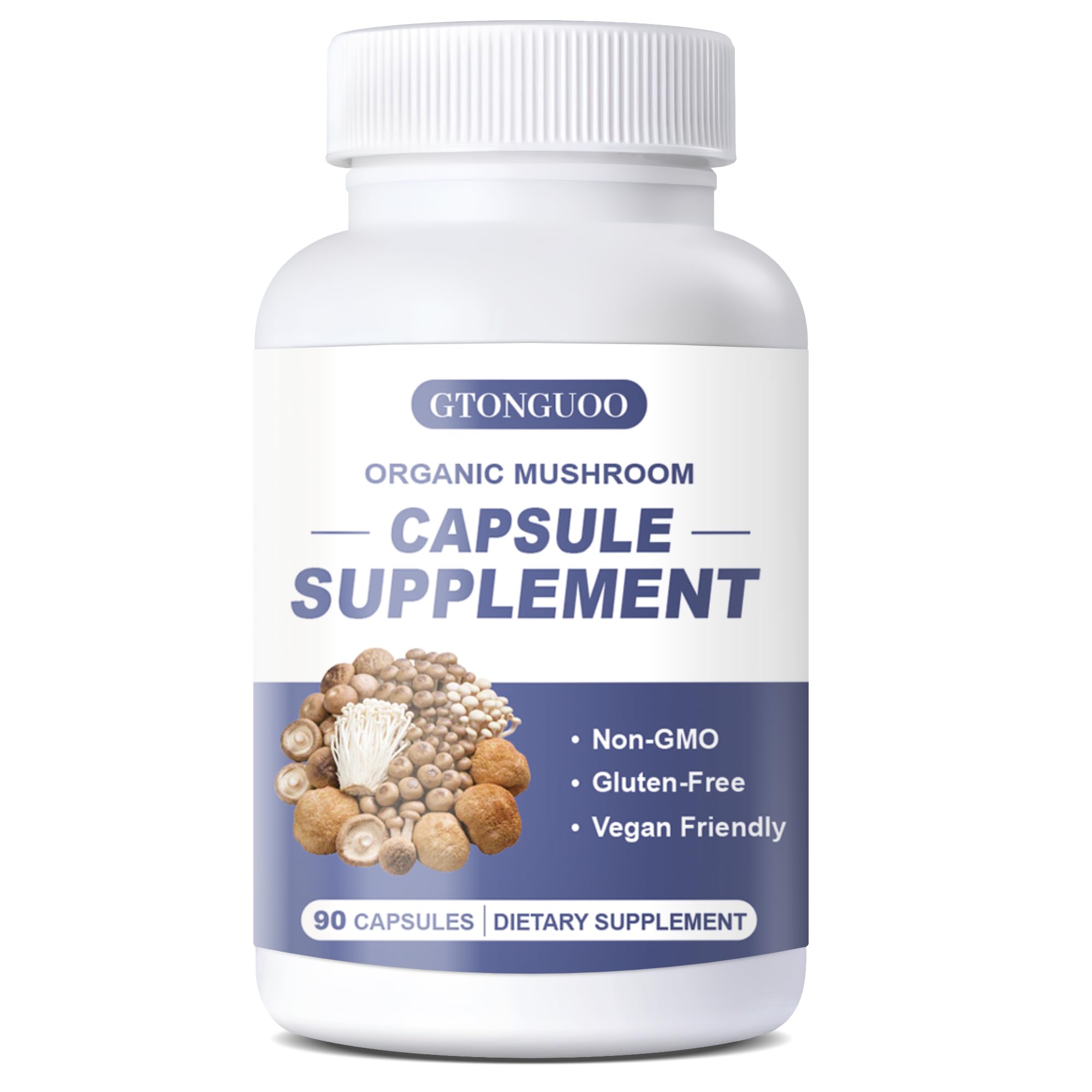 GTONGUOO Mushroom Supplement 7 Complex for Immune & Wellness Support Non-GMO Vegan 90 Capsules