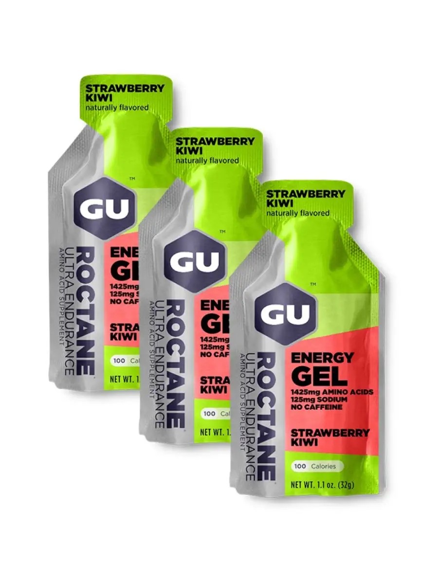 Энергетический гель серии Roctane от американского бренда GU Energy Labs разработан специально для соревнований и интенсивных тренировок. Обеспечивает максимальный энергетический эффект на дистанции от двух видов углеводов - мальтодекстрин и фруктоза.В составе увеличенное количество ВСАА 1425 мг (лейцин, валин, изолейцин), натрия 125 мг (основной электролит), калий или кальций (зависит от вкуса). Содержит Таурин, помогает работе сердца и Бета – аланин, который способствует образованию карнозина (предотвращает скапливание продуктов распада мышц).Компактная форма геля в удобной упаковке весом всего 32 грамма, что удобно брать с собой на дистанцию.Одна порция энергетического геля GU Roctane содержит:23 г углеводов 100 кКал125 мг натрия40 мг кальцияНе содержит запрещенных WADA веществ.Рекомендации по применению: 1 порция за 5 мин до тренировки и далее каждые 45 минут.Когда вы закончили интенсивную тренировку, съешьте один гель, даже если прошло меньше 30 минут после последнего употребления геля. Теперь, когда вы остановили тренировку, ваш желудок может обрабатывать эти калории и нуждается в них, чтобы начать восстанавливать ваш гликогена в мышцах - по факту, хранилища энергии организма. Всегда поддерживайте уровень жидкости в организме. Старайтесь пить каждые 15 минут во время тренировки.Наш магазин является единственным эксклюзивным дистрибьютером продукции GU Energy Labs на территории России. Gu Energy Gel - выбор профессиональных спортсменов с 1993 года.