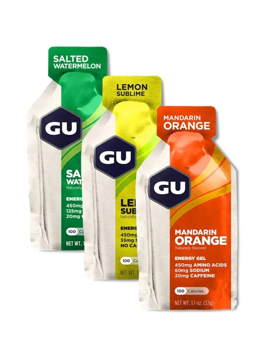The GU gel recipe includes carbohydrates and amino acids and was developed in such a way that when the entire serving is consumed at once, the gel will bring you maximum benefit and effectiveness.